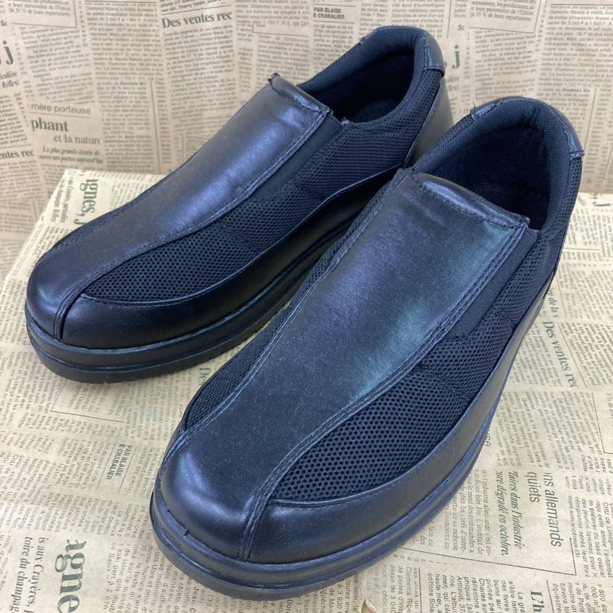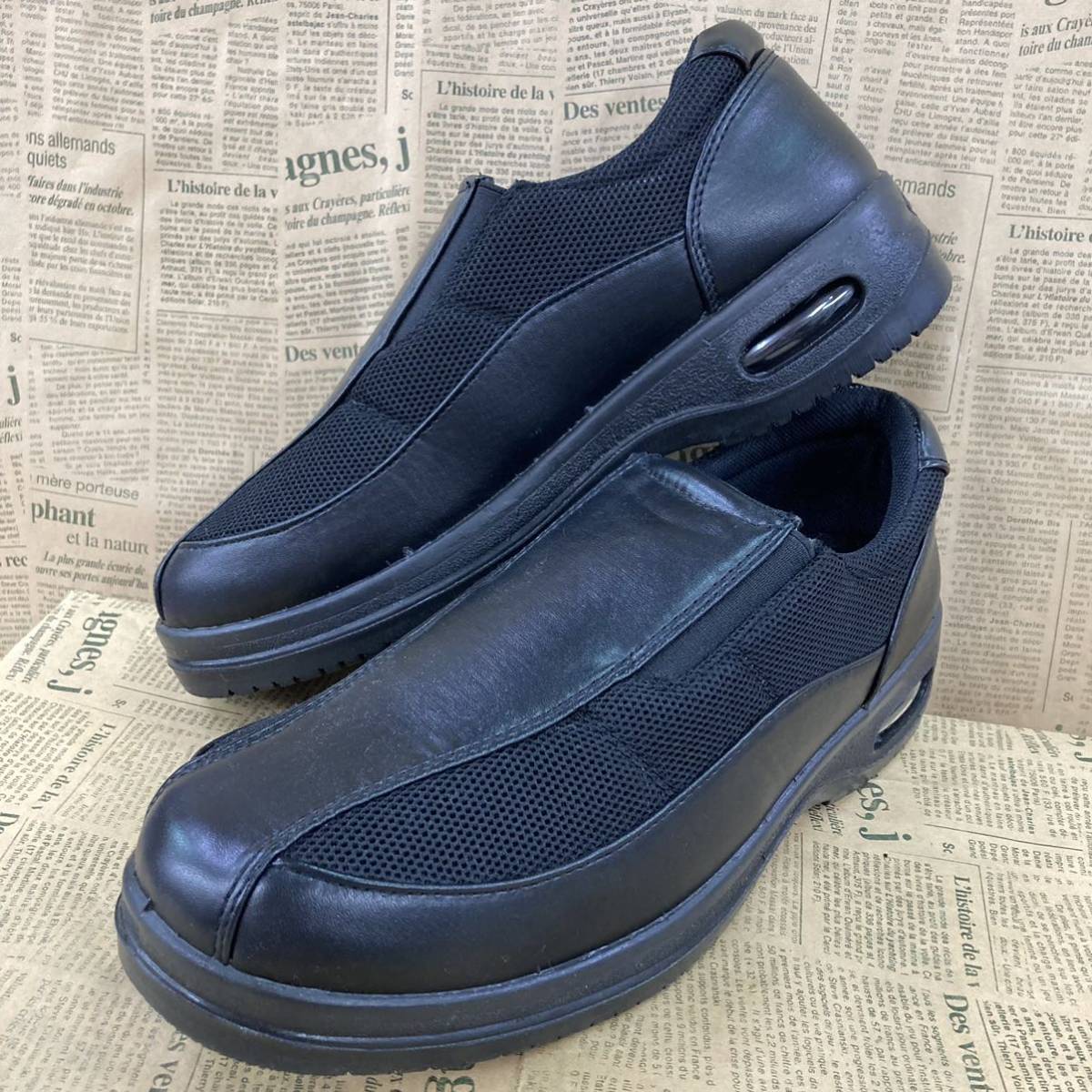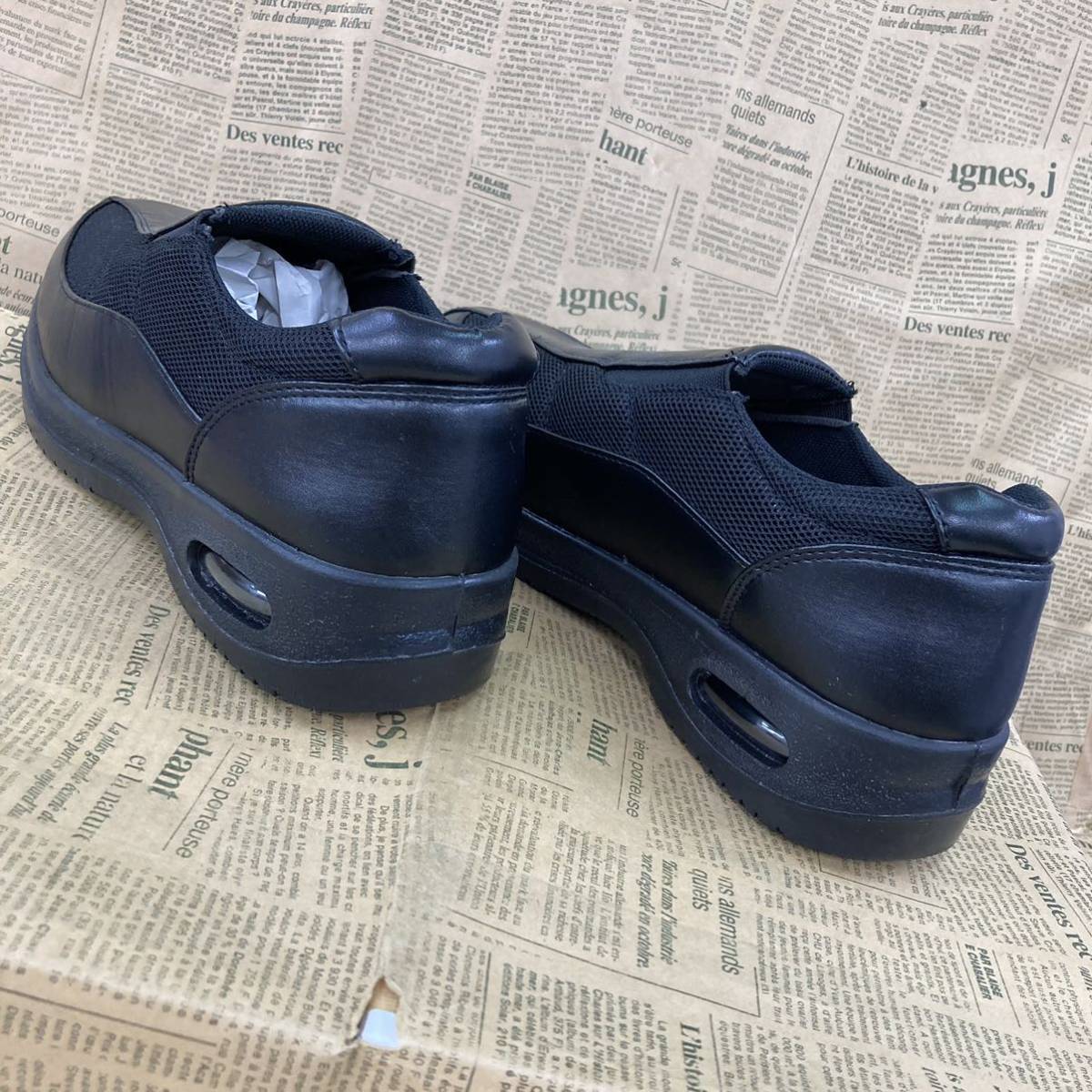 靴底は厚めで、幅広仕様、軽量設計となっておりますので長時間のご使用でも疲れにくいと思います