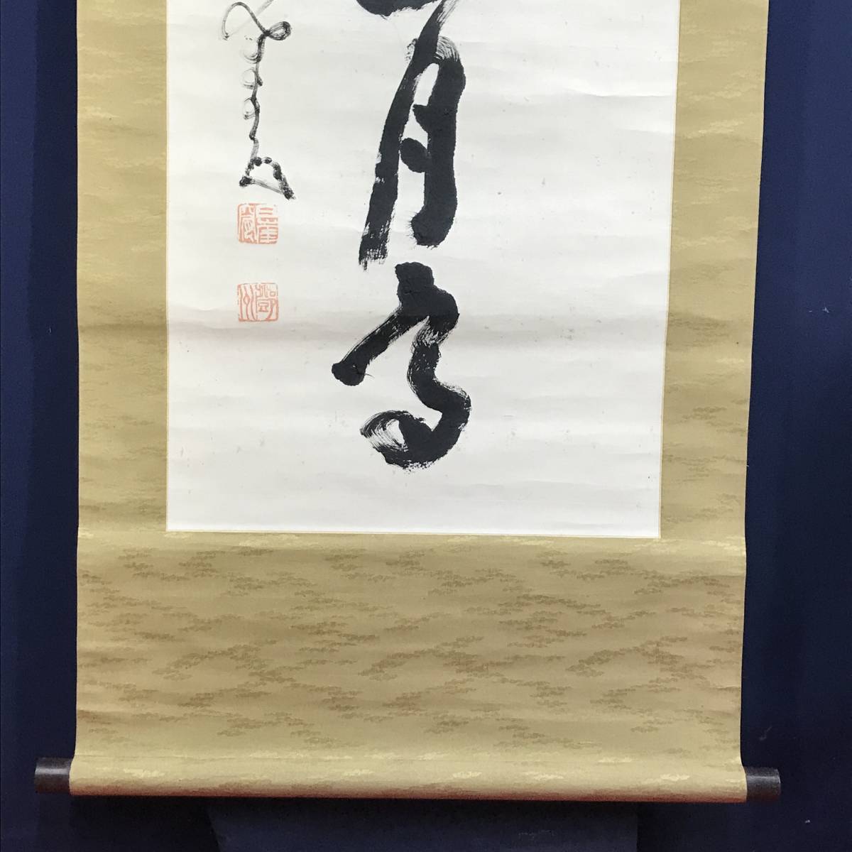 真作/中原南天棒/猛虎一聲山月高/茶道具/茶掛/禅語//掛軸☆宝船☆AD-326