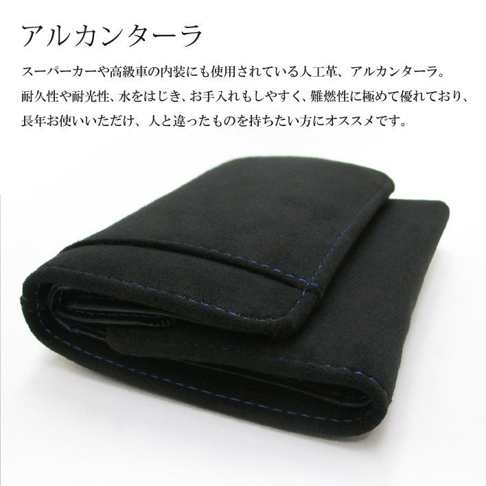 お札や小銭、カードがたくさん収納できるのにコンパクトにまとまる三つ折り財布。 中のお札入れは革が柔らかいので広げやすく取り出しやすいです。カード入れは10か所でたくさん収納できます。 外側のポケットには定期などを収納してもよいです。 アルカンターラ生地で触り心地が良く、高級感があります。 表側の素材は、スーパーカーや高級車の内装にも使用されているアルカンターラという、クルマ好きには高級内装素材として知られている人工革です。 スエードに似た高級感ある見た目ですが、より耐久性や耐光性、水もはじきやすく、難燃性が極めて優れていると同時に肌触りの良い素材です。 液体の吸収力が低く、水に濡れても乾けば元通りの風合いを取り戻します。汚れ落としが簡単です。 耐久性に優れているので長年お使いいただけます。人と違ったものを持ちたい方にオススメです。 誕生日プレゼント・クリスマス・バレンタイン・父の日・母の日などの贈り物にも最適です。 ■カラー:BK/BL(ブラック×ブルー)/BK/RD(ブラック×レッド)/LBL/BK(ライトブルー×ブラック)/PK/RD(ピンク×レッド)よりお選び下さい。 (落札時、オーダーフォームにてご希望のカラーをご連絡下さい。ご連絡を頂けない場合、当店で選択させて頂きます。) ■素材:外側 アルカンターラ、内側 牛革 ■サイズ(約):横12.5cm×縦10cm×マチ3cm ■重量:約98g ■仕様:札入れ×1、小銭ポケット×1、カード入れ×10、カードポケット(外側)×1 ※一部共通画像使用 ※ご注意※革は自然が造り出した理想的な繊維です。 自然由来の素材のため革には細かなシワや傷跡・トラ等が存在する場合があります。 これらは本革である証拠であり、革本来の特長であり、魅力でもあります。 ※新品ではございますが製造上の過程により商品によっては細かな傷やへこみ、剥げ等がある場合が御座います。 また、多少の縫製のゆがみ・ノリの付着がある場合がございます。 ※ご覧のモニターやプラウザの設定、照明等により、画像と実物の色合いが、若干異なる場合が御座います。 予めご理解頂いた上でご購入下さい。 | |