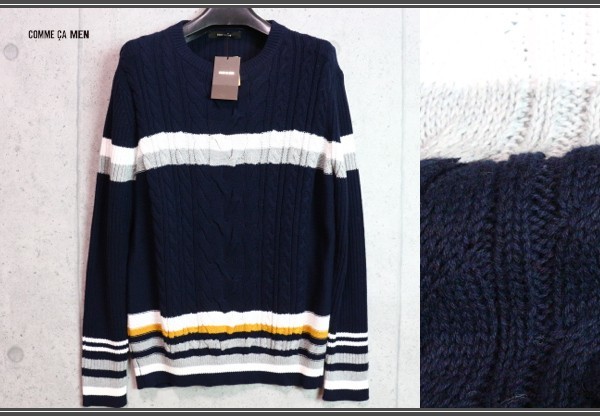 コムサ系のメインブランド、コムサメン(COMME CA MEN)のケーブルカラーボーダーニット。