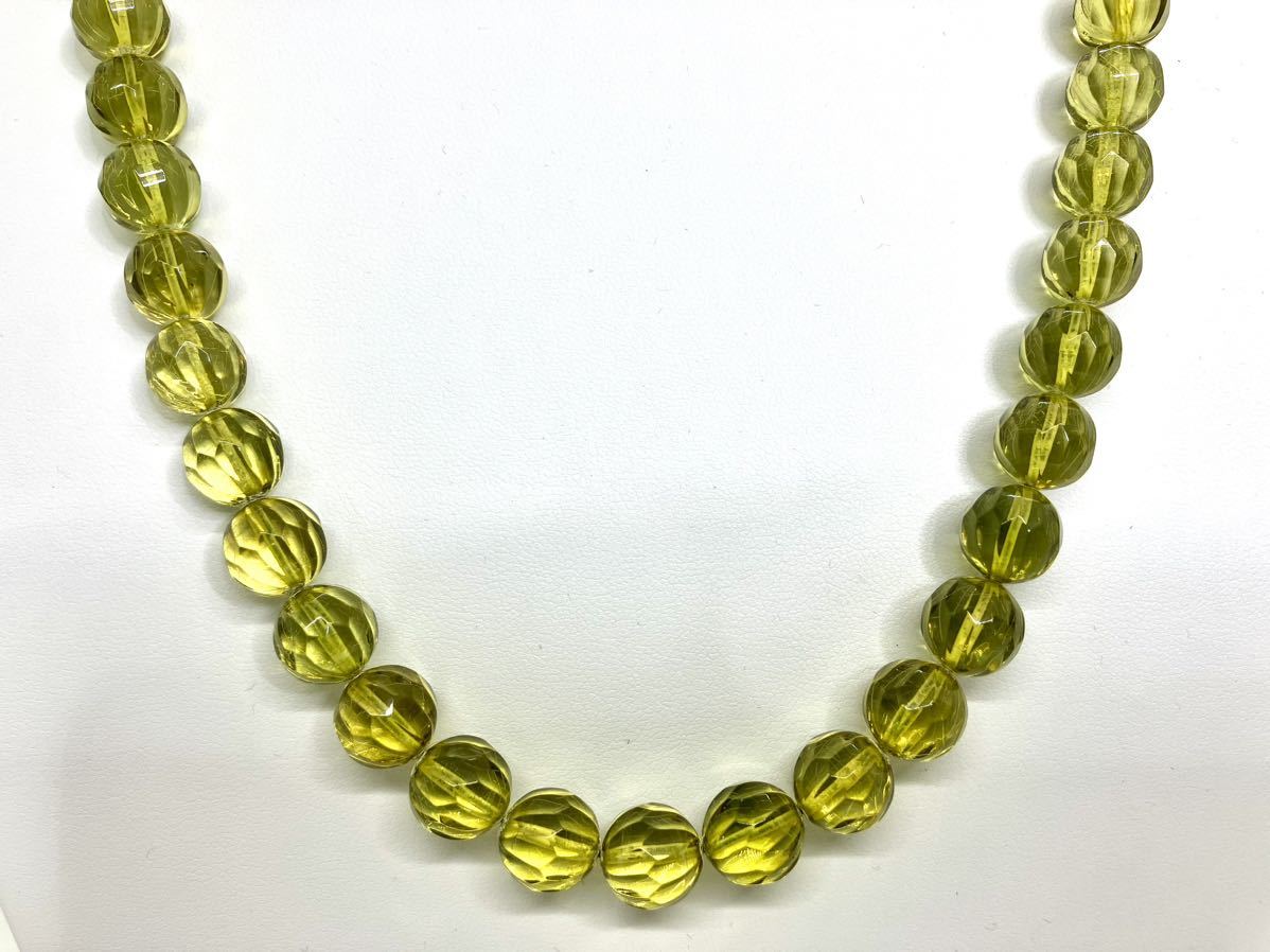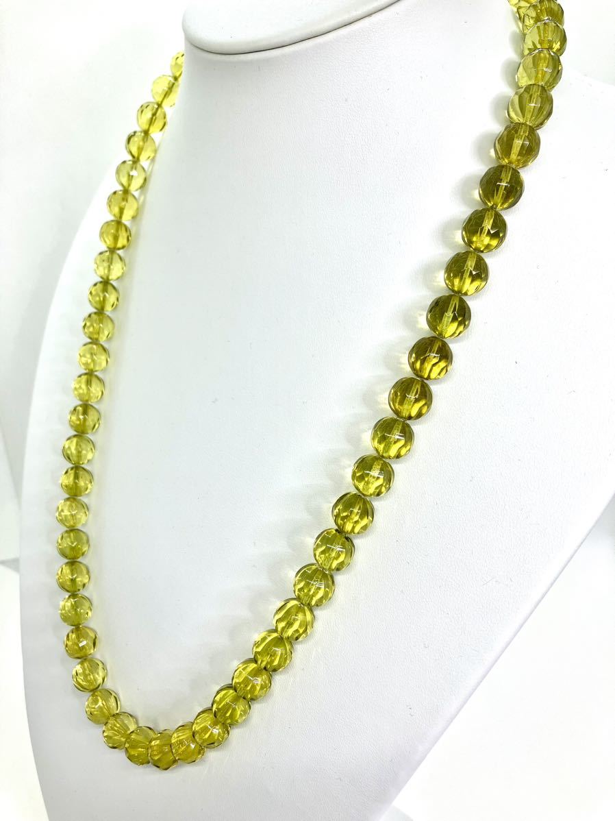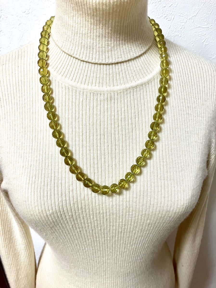 貴重なグリーンアンバー【約11㎜珠】をふんだんに使用した全周のロングネックレスです。頭からかぶれますので、取り外しがしやすいです。