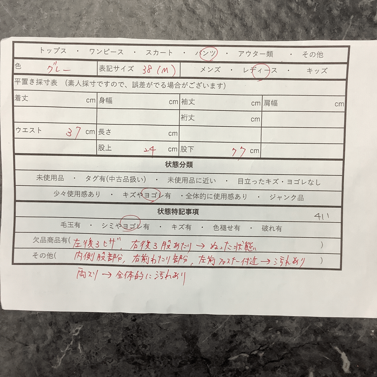 慎重に検品を行っておりますが、見落としがある場合がございます。
