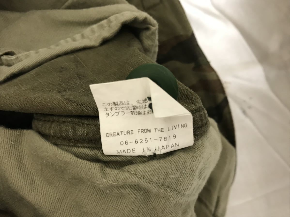 商品名:本物クリーチャーフロムザリビング CREATURE FROM THE LIVING CFTLコットンカモフラ迷彩柄カーゴハーフショートパンツアメカジメンズサーフミリタリーワークカーキS日本製ダメージ加工