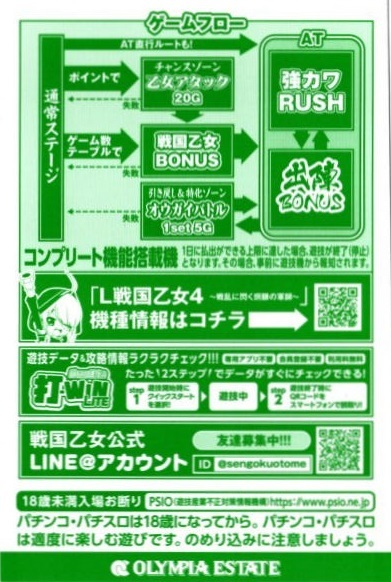 オリンピアエステート/OLYMPIA ESTATE L戦国乙女4 戦乱に閃く炯眼の軍師 遊技説明書 2023年 B