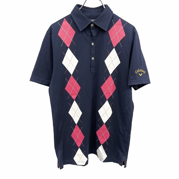 | 商品タイトル | キャロウェイ Callaway ゴルフ ポロシャツ 半袖 アーガイルプリント 鹿の子 ロゴ刺繍 ポリ×綿 L ネイビー 紺×ピンク×白×黄 メンズ |