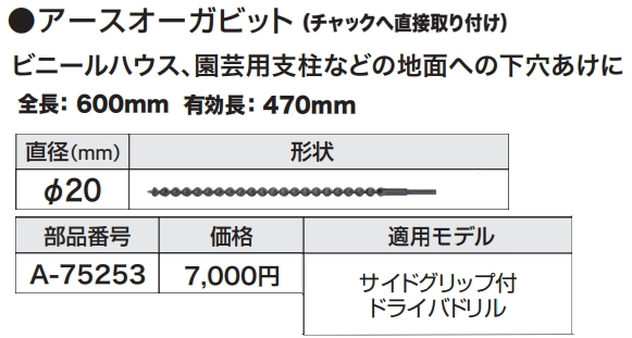 マキタ アースオーガビット φ20 【チャックに直接取付け】