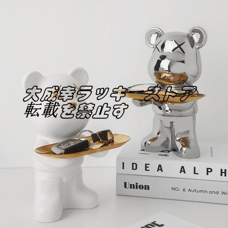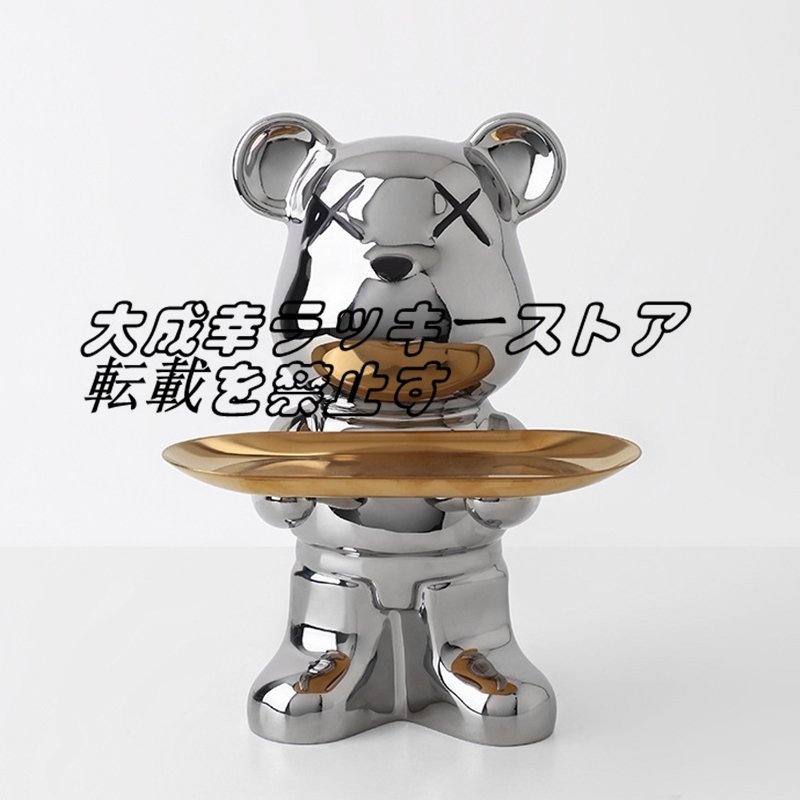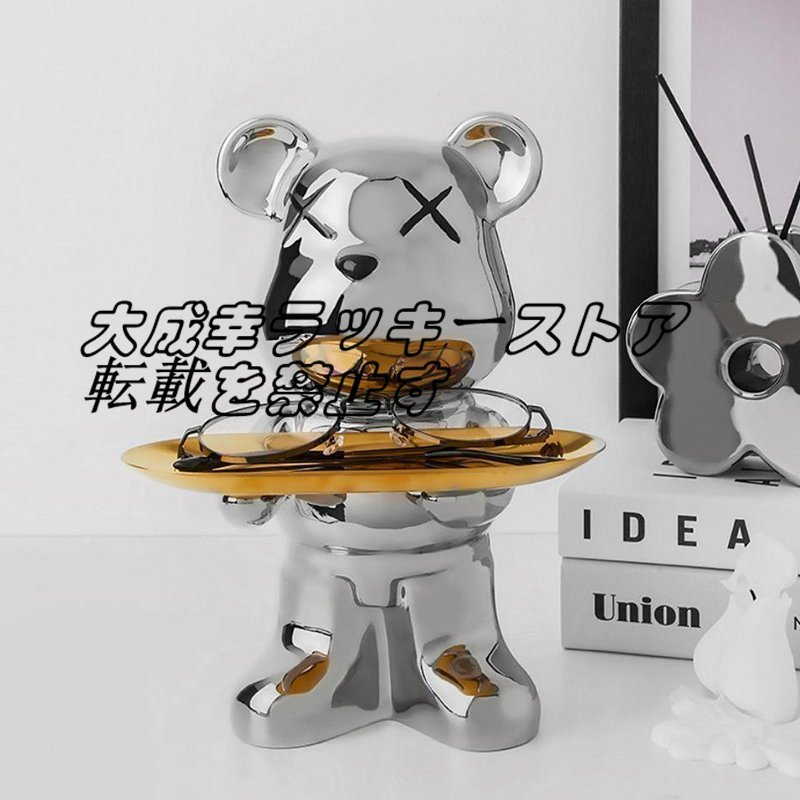 店長特選 北欧風 飾り物 オーナメント 玄関収納 ベア 収納トレイ リビング  ファッション セラミックス シルバー F1793