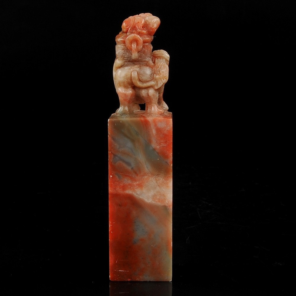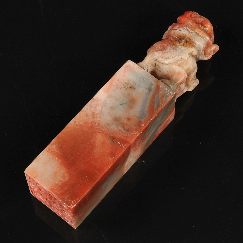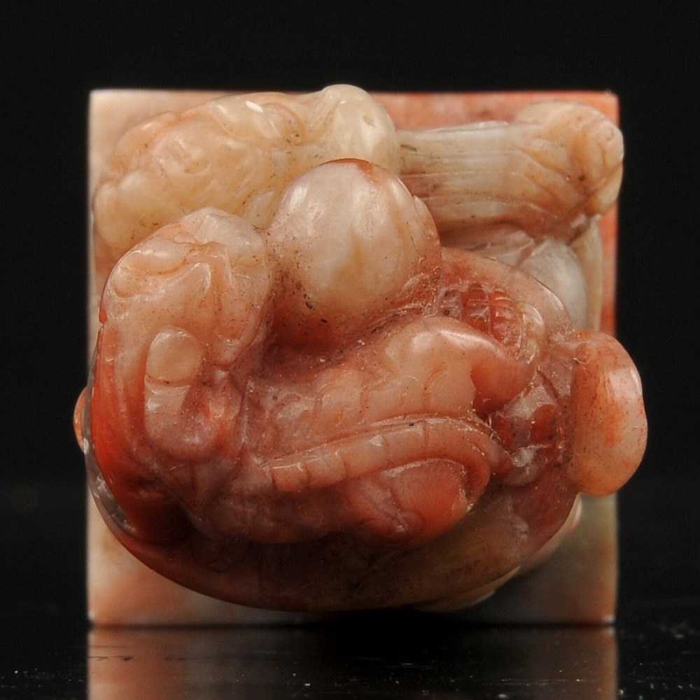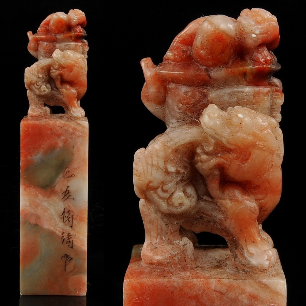 寿山石 獅子彫紋 印材 印章