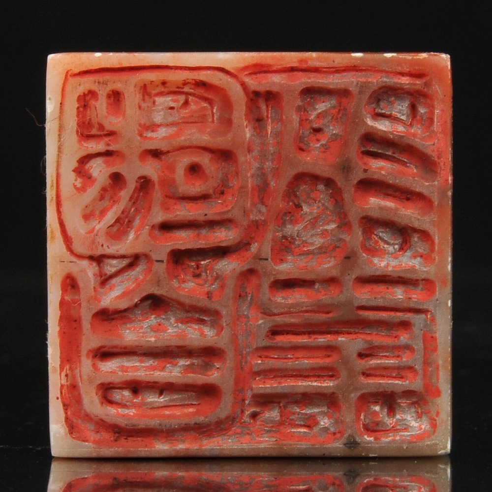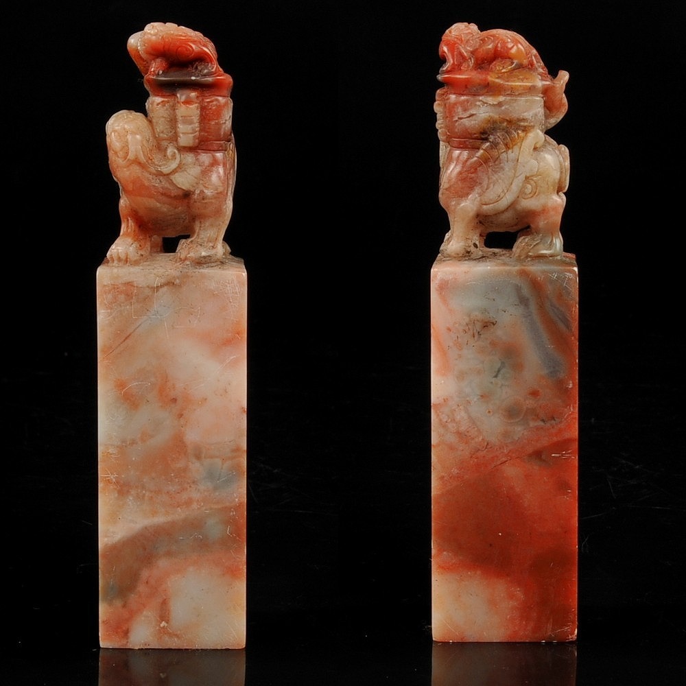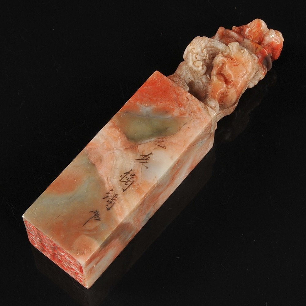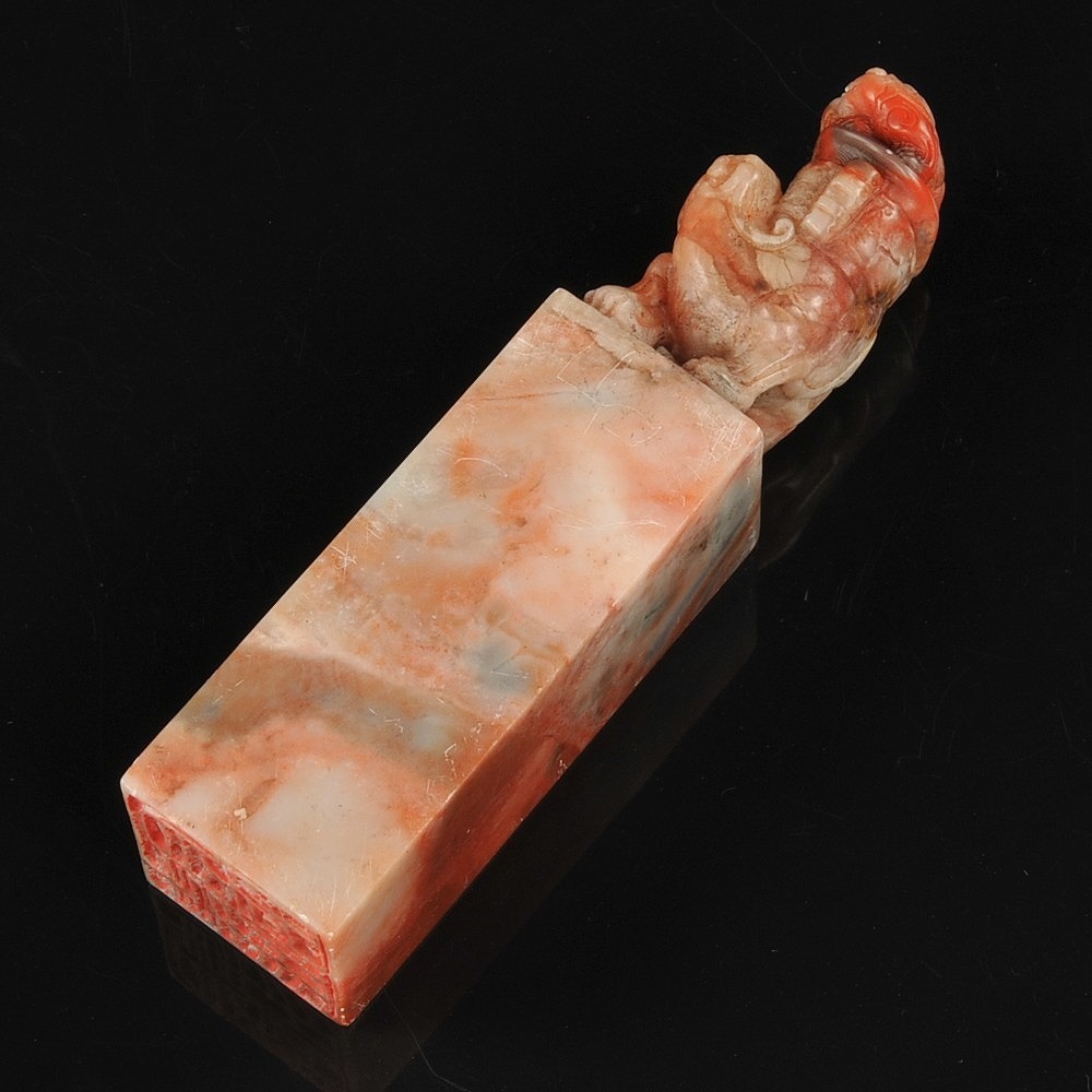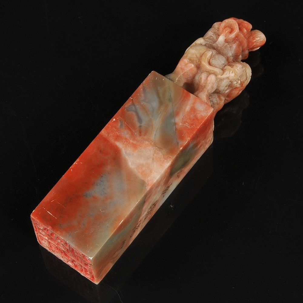 寿山石 獅子彫紋 印材 印章
