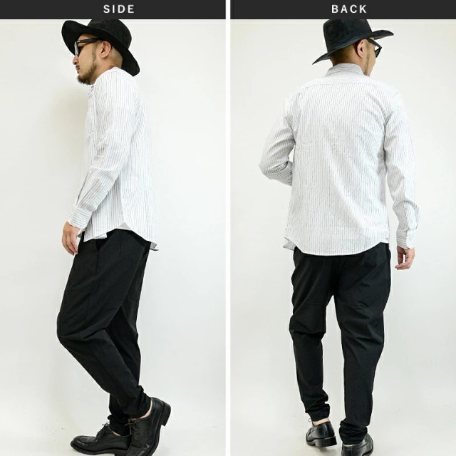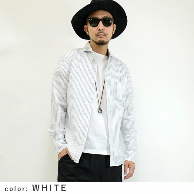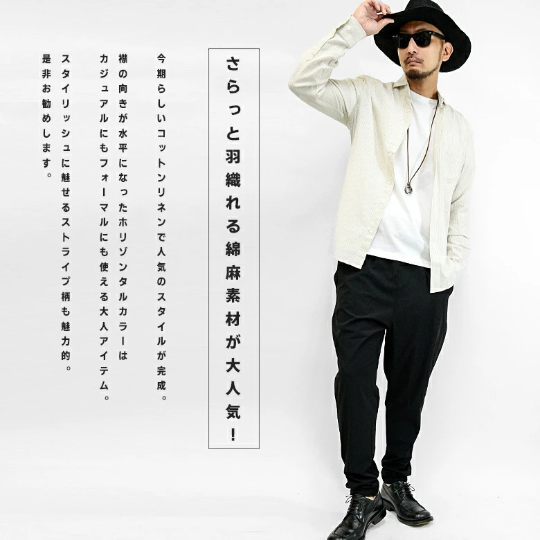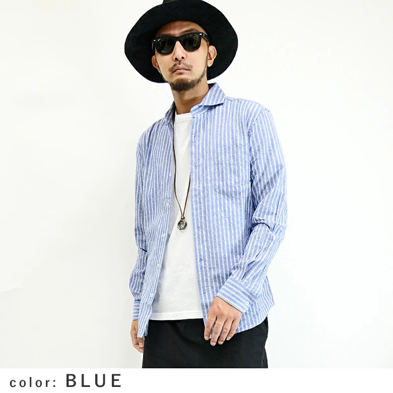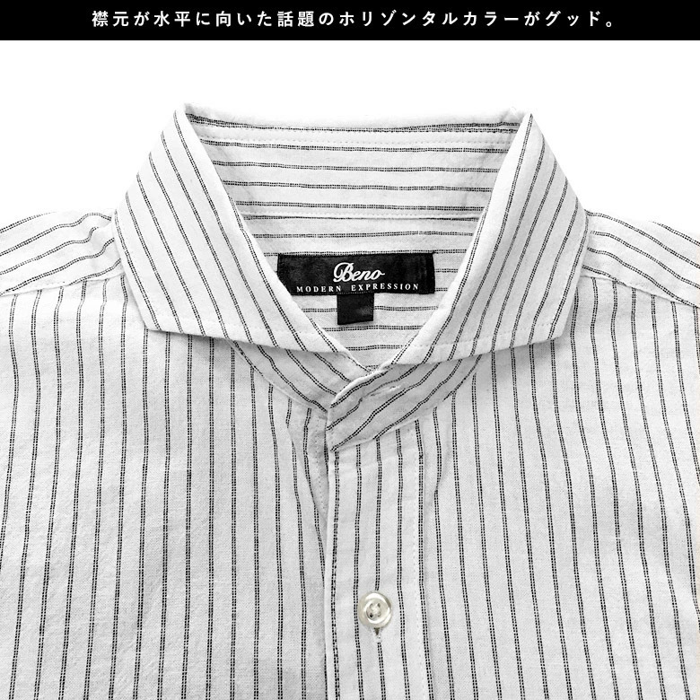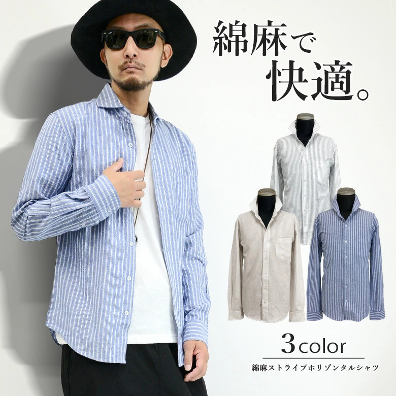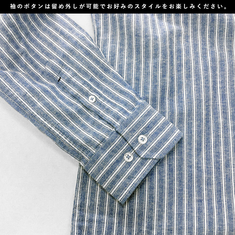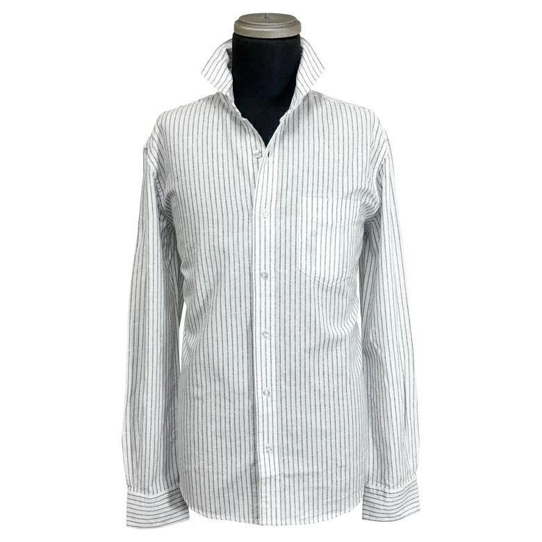 綿麻(コットンリネン)/長袖シャツ/ホリゾンタルカラー(カッタウェイ)/ストライプ柄/