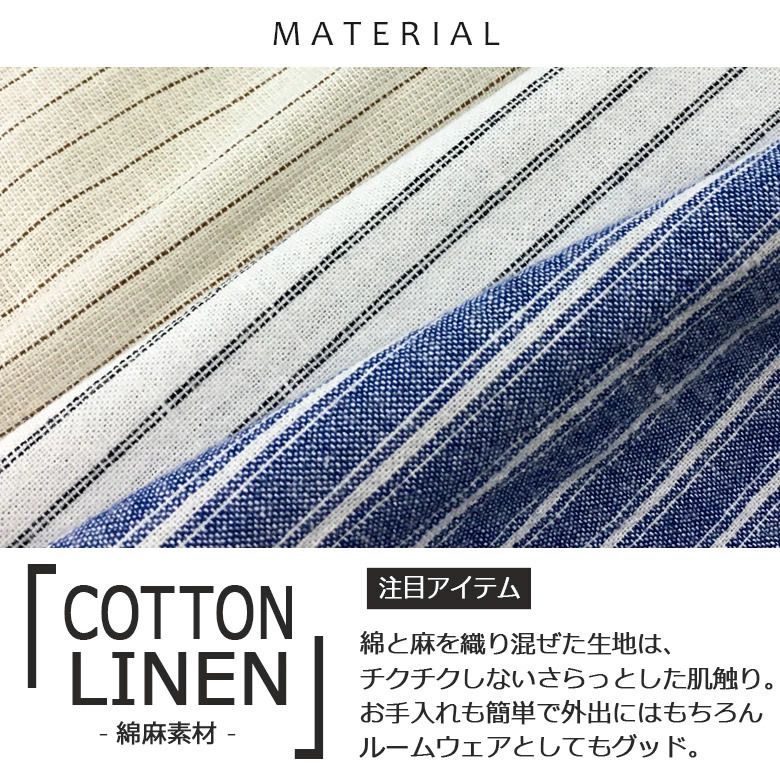 通気性の良い綿麻素材でさらっと涼しく着こなすことができます。