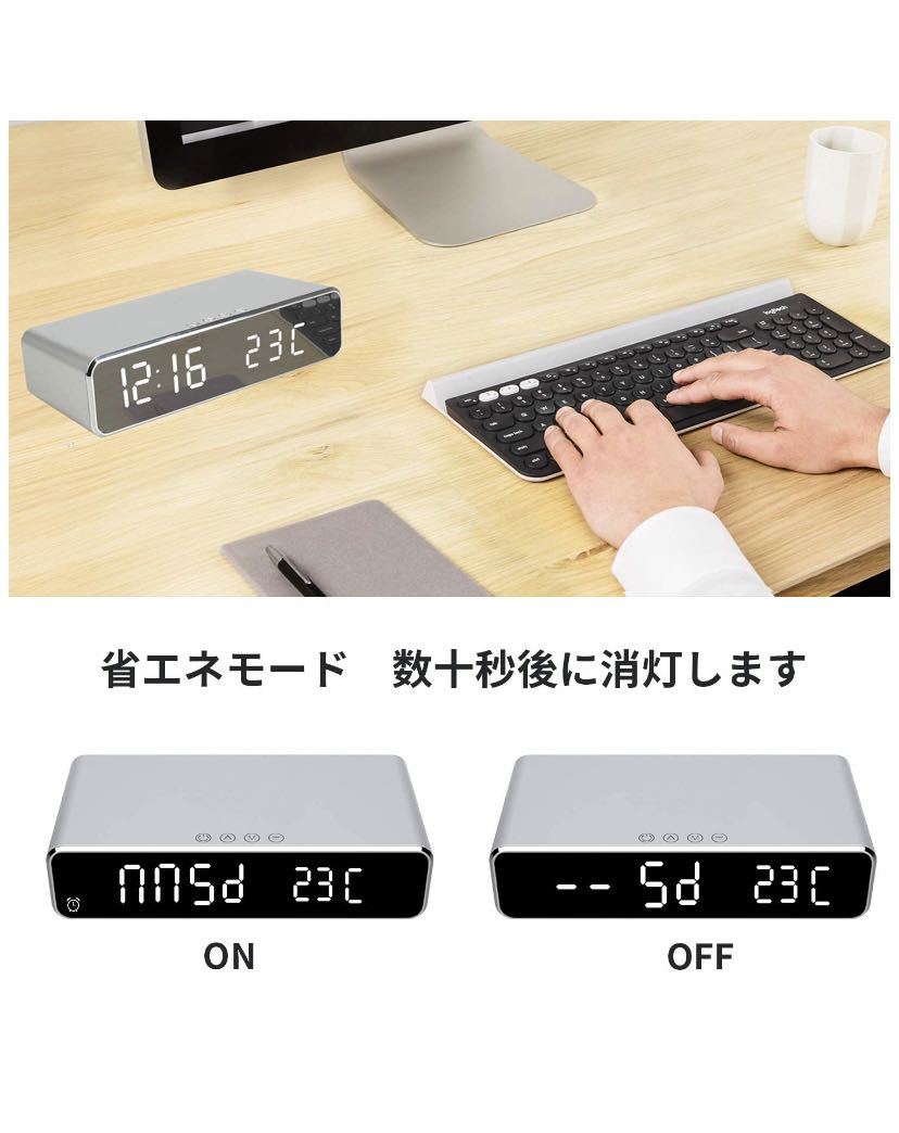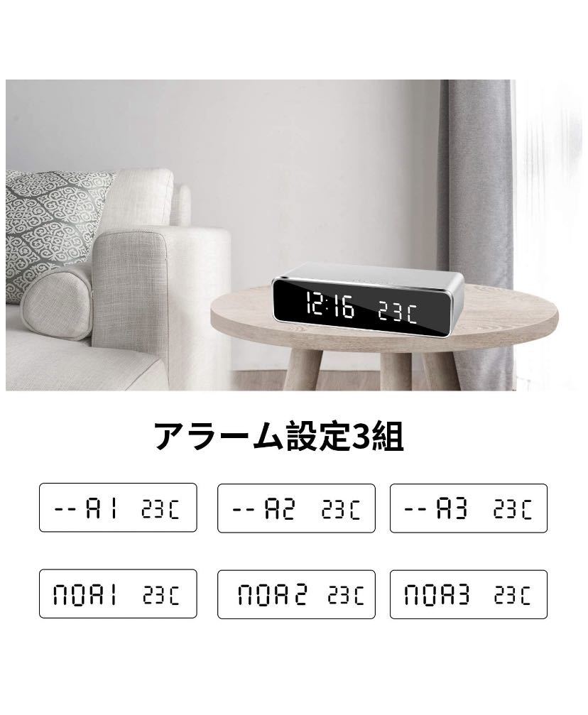 LEDシンプルな目覚まし時計:どんな空間でも馴染みやすくシンプルなデザインのデジタル目覚まし時計は滑らかな鏡面で数字が遠くから簡単によみとれます。また日常パタパタな毎朝から一つの鏡としても最適です。適応場所:リビングはもちろん、寝室やパソコンデスク、子供部屋や客間など。