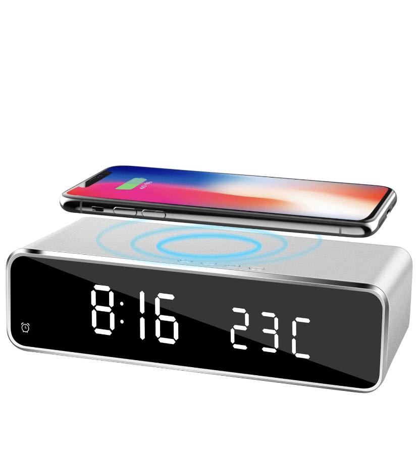 先端技術 QIワイヤレス充電 目覚まし時計 :この置き時計はQi受電技術を採用して、Qi対応端末またあらゆるQI対応カバーを付けた携帯電話を本体上に置くだけで充電できるワイヤレス目覚まし時計です。携帯にケーブルが絡まったり、引っ掛けてケーブルが切れてしまうという心配がありません。頻繁にコネクターの抜き差しは必要はありません。ご注意:購入する前に、スマホがQIワイヤレス充電機能を対応できるかどうかを確認してください。乾電池で給電時にqiワイヤレス充電が対応できておりません。Qiワイヤレス充電機能はUSBケーブルを接続して対応できます。