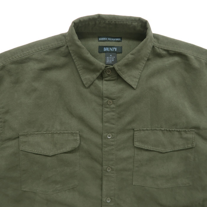 古着 フェイクスウェード 長袖 ボックスシャツ オリーブグリーン サイズ表記:XL gd38571