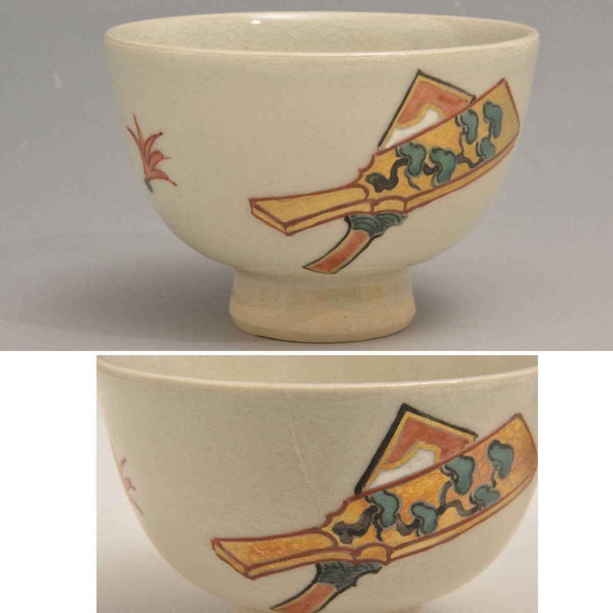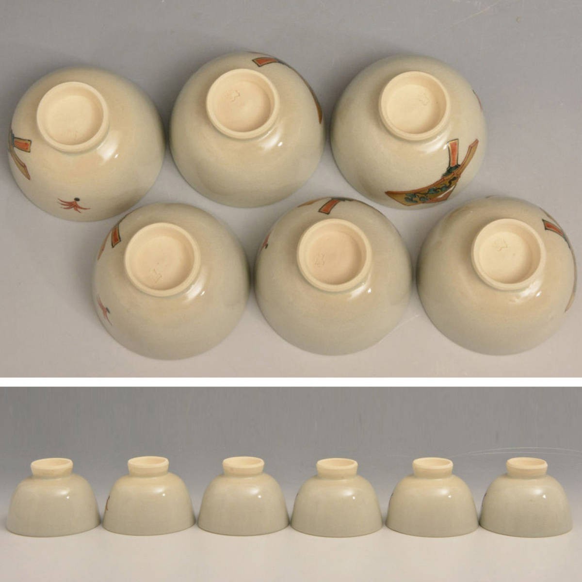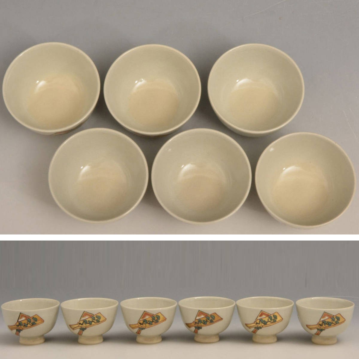 T06994 三浦篤 色絵羽子板図茶碗6客:真作