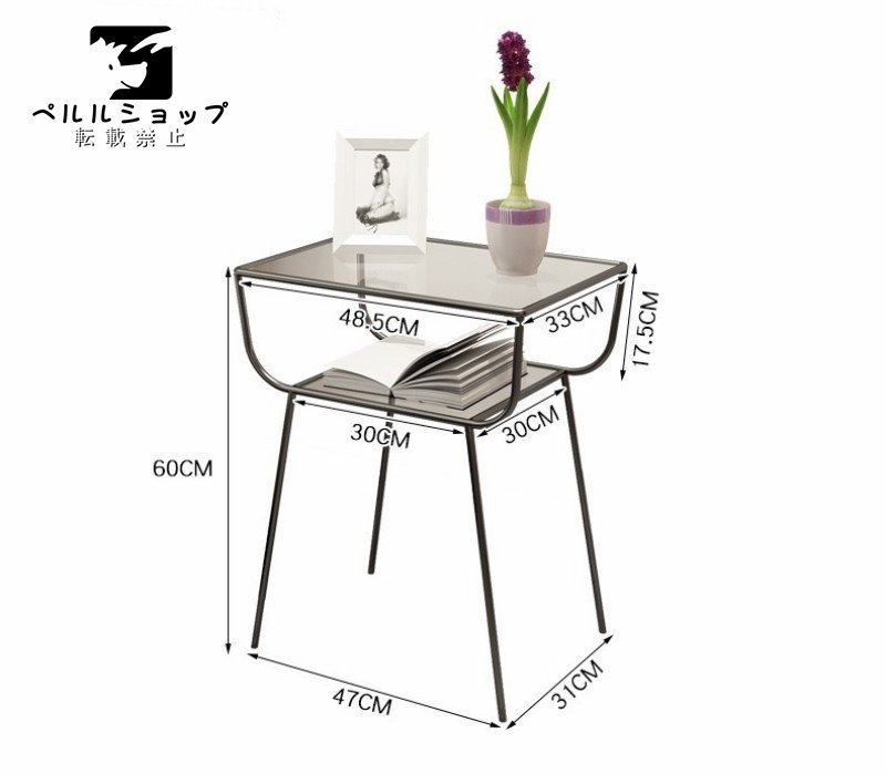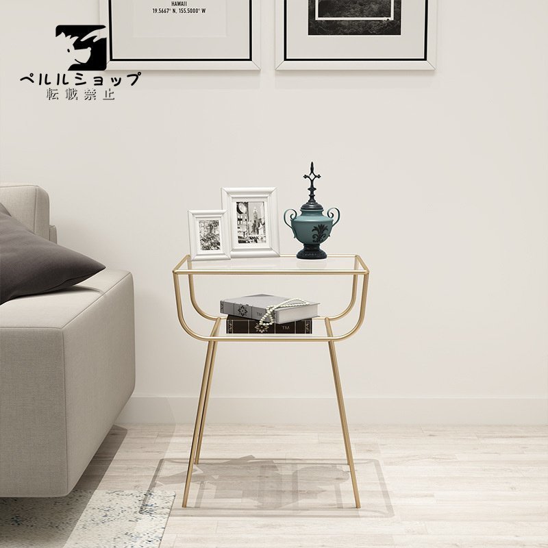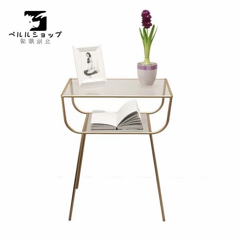 北欧 シンプル 鉄芸 強化ガラス 小型サイドテーブル リビングルーム ソファ―用サイドテーブル ベッドルーム用テーブル