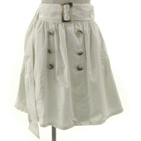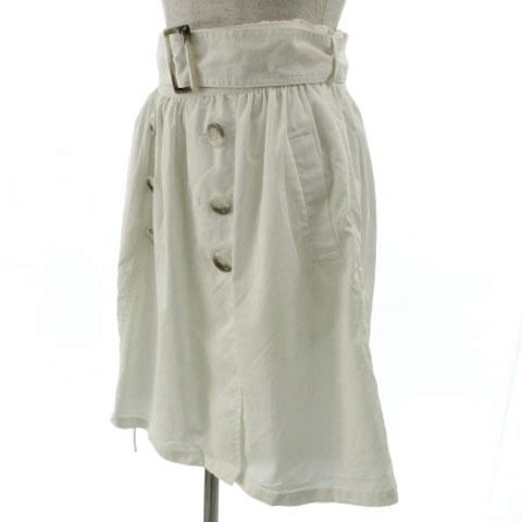ジルスチュアート JILL STUART スカート フレア ボタンダウン風 ひざ丈 ベルト付き コットン混 アイボリー S レディース