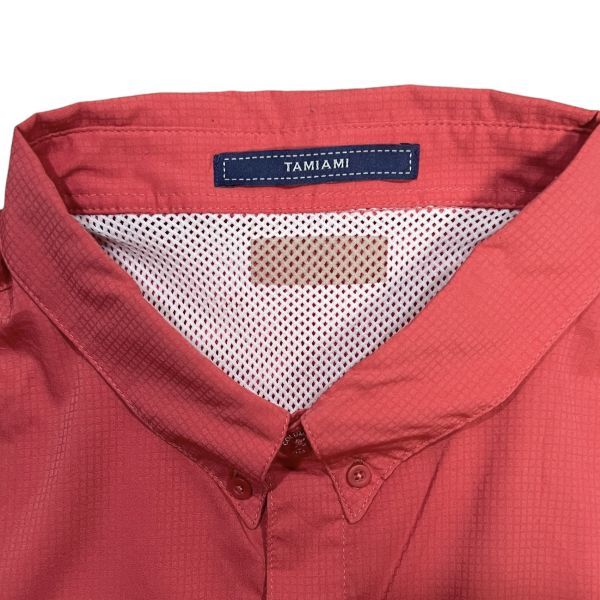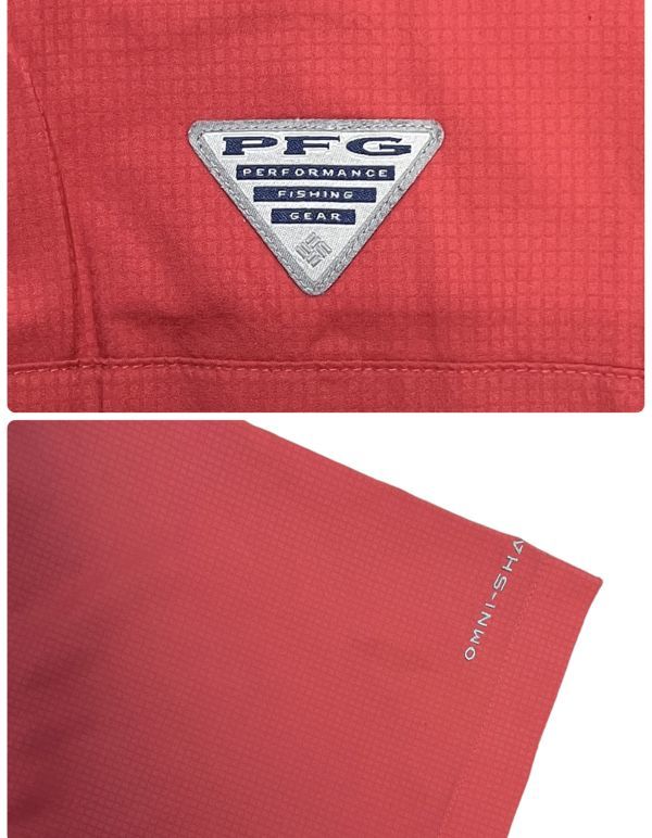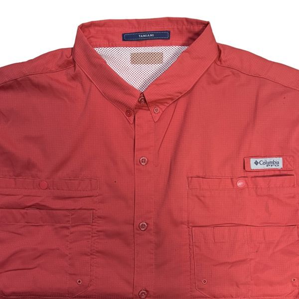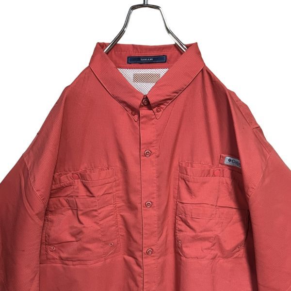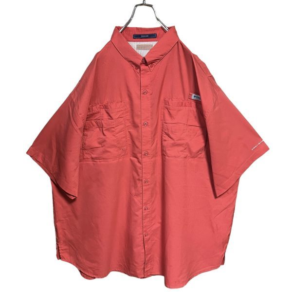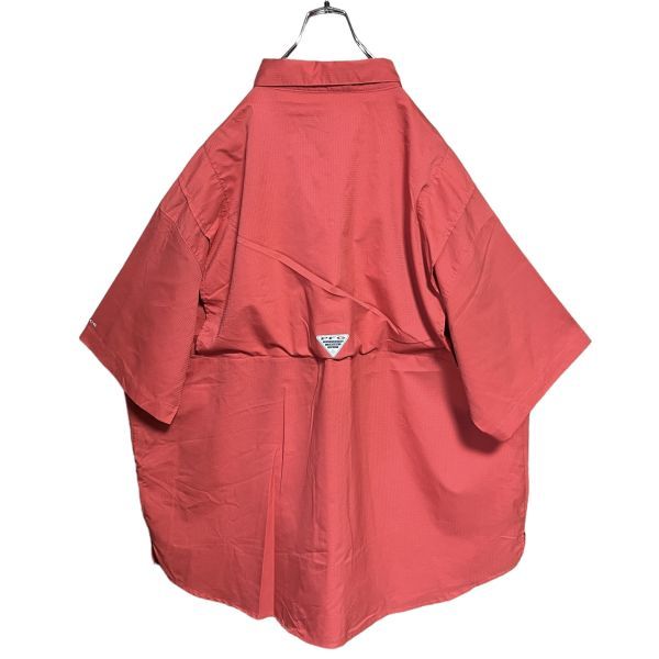 ★アウトドア★Columbia 半袖シャツ XXL相当 薄紅色系 PFG ベンチレーション 刻印ボタン ピスネーム フィッシング コロンビア古着 クリーニング プレス済み 0898