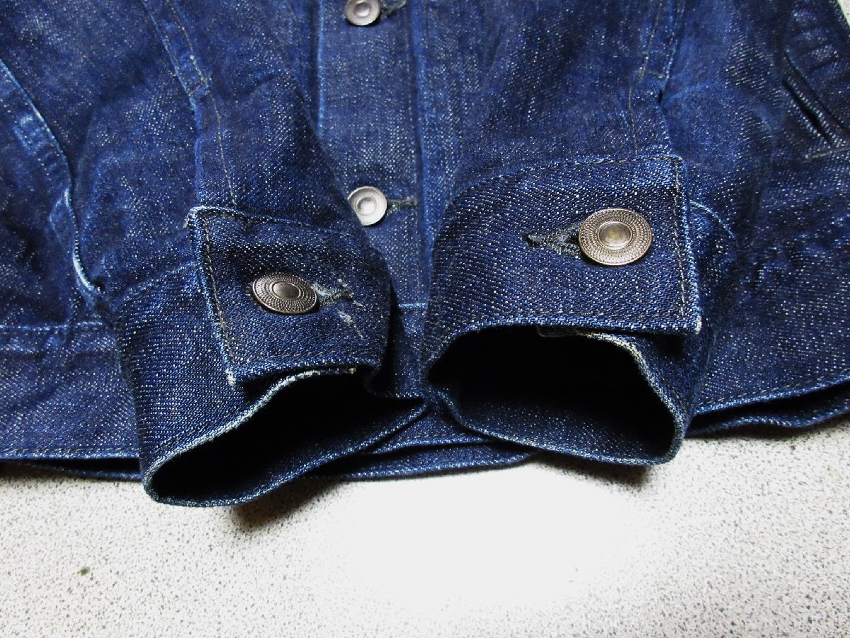 | ●カラー:インディゴ ●サイズ表記 SMALL *実寸(平置き約㎝) ・袖丈 64 (肩ステッチから袖先) ・肩幅 39 (肩ステッチから肩ステッチ) ・身幅 45 (脇下から脇下) ・着丈 62 (後ろ襟元付け根から裾) (※多少の誤差はご了承下さい) 赤耳/セルヴィッチデニムです。