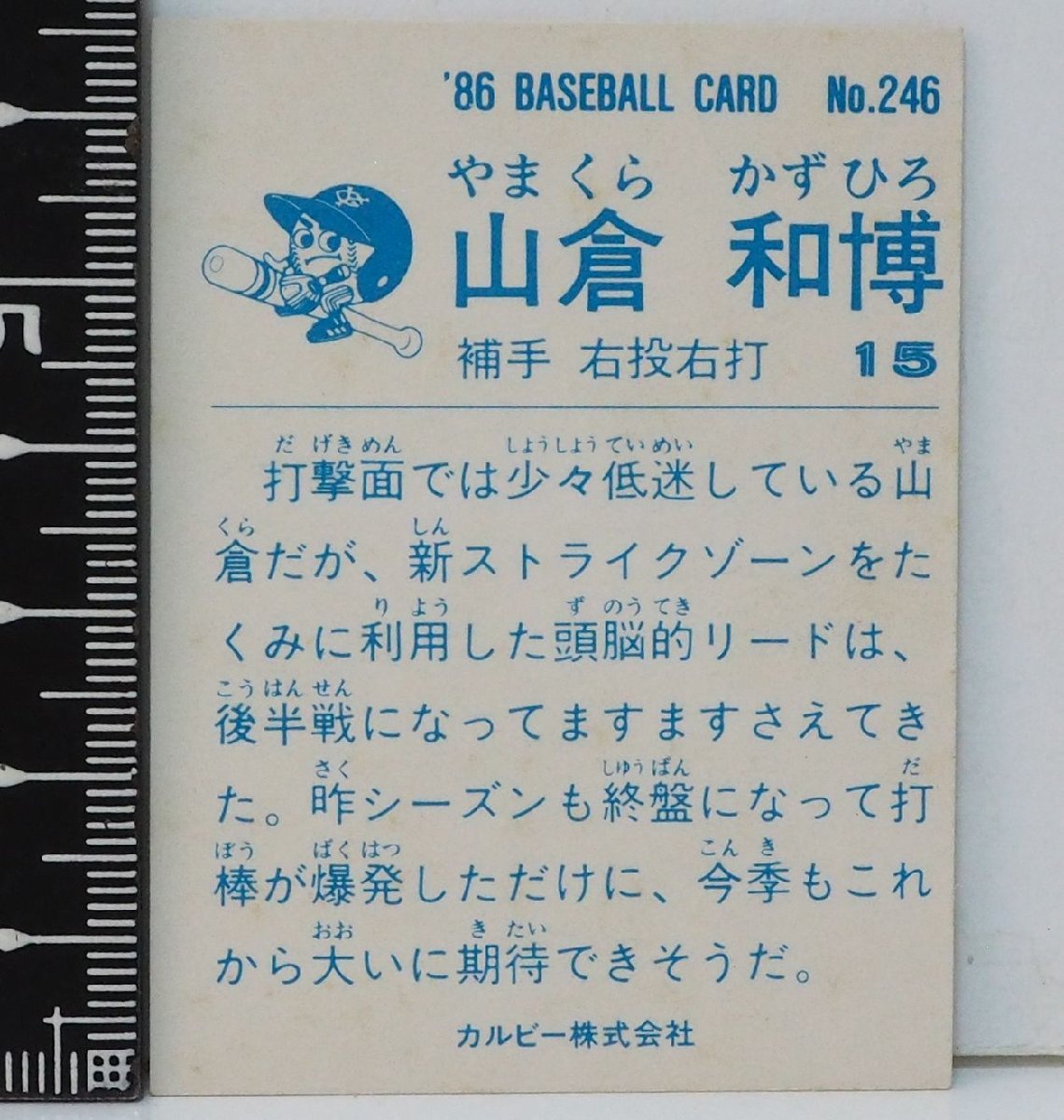 86年 カルビー プロ野球カード No.246【山倉 和博 捕手 読売ジャイアンツ巨人】昭和61年 1986年 当時物 Calbee おまけ食玩BASEBALL【中古】