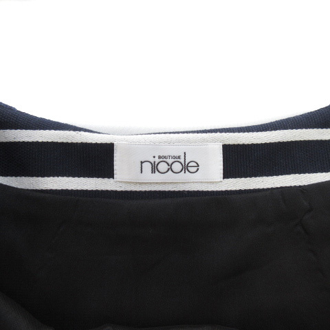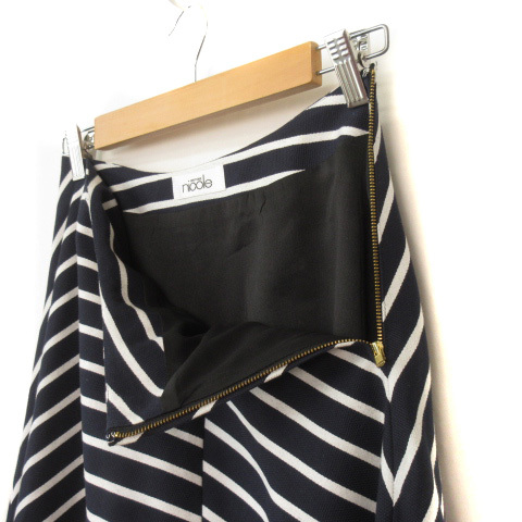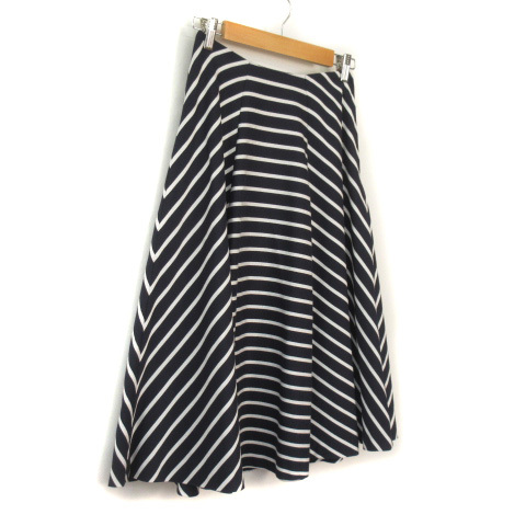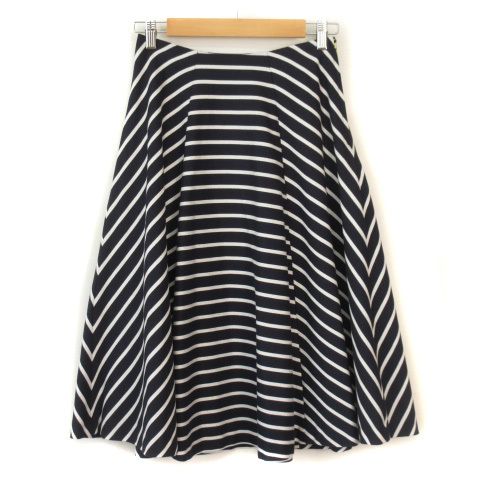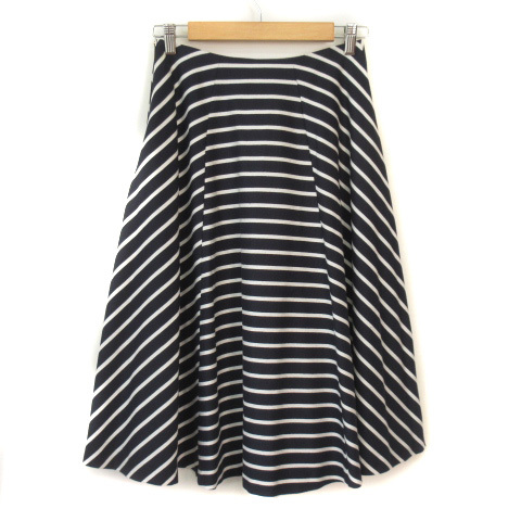 ブティックニコル boutique NICOLE スカート フレア ボーダー リネン混 38 紺 ネイビー レディース