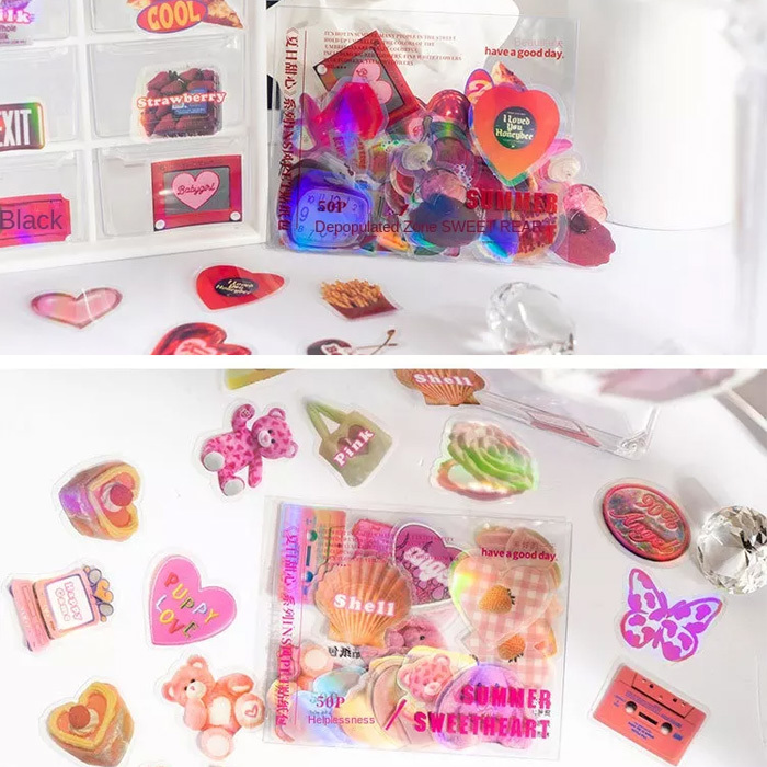 50枚 シール おしゃれ 透明 ハート アンティーク ビンテージ デコステッカー アンティーク調 コラージュ レトロ 0730-3