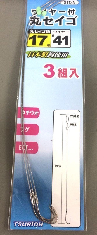【3枚セット】仕掛け針 タチウオ釣り ワイヤー付 丸セイゴ 針 17号#41 3個セット【太刀魚 タチウオ フグ ワイヤー】