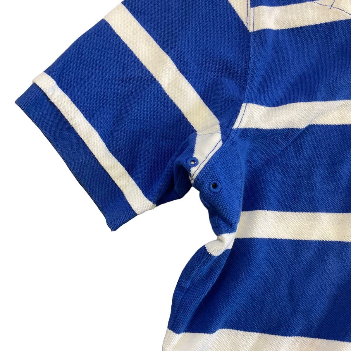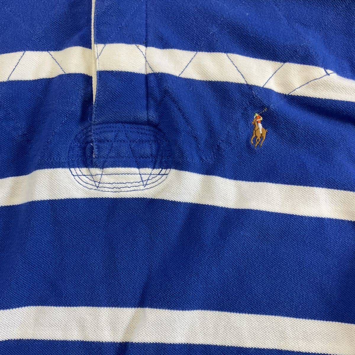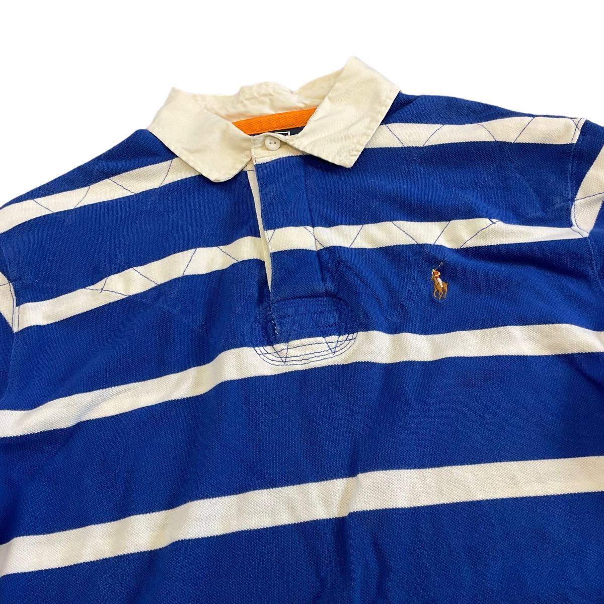 90s POLO RALPH LAUREN 半袖 ポロシャツ L ブルー×ホワイト ボーダー柄 ラガーシャツ ワンポイント ロゴ 刺繍 ポロ ラルフローレン