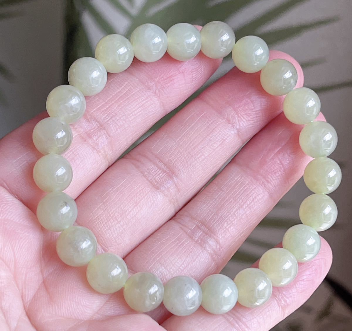 天然石 和田玉且末糖料ブレスレットのサイズ約:8mm*23粒;
