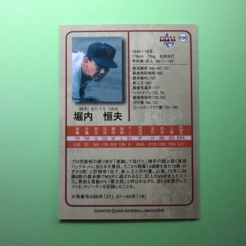 BBM2004 読売ジャイアンツ70周年 #038 堀内 恒夫
