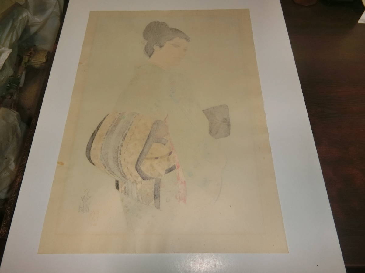 真作・女ごころ、木版画、岩田専太郎