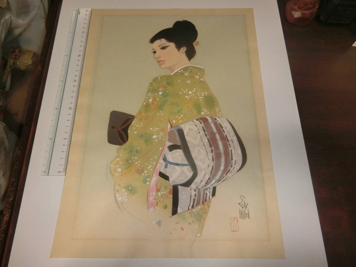 経年焼け、擦れ、シミ、汚れ、折れなど有る物も有ります。岩田専太郎氏の作品でなければ返品を受け付けます