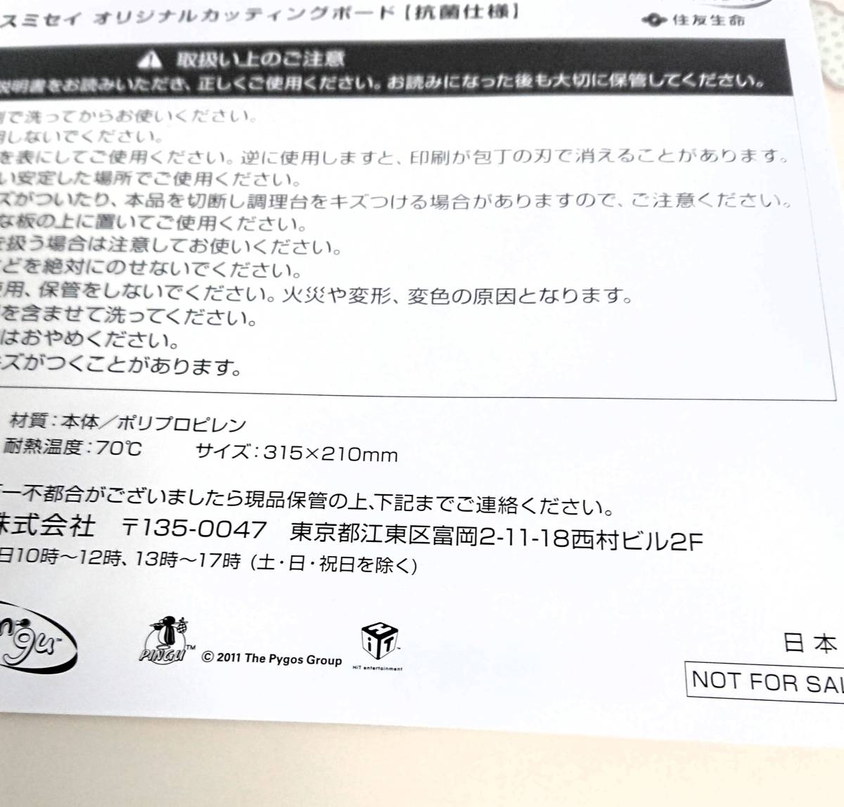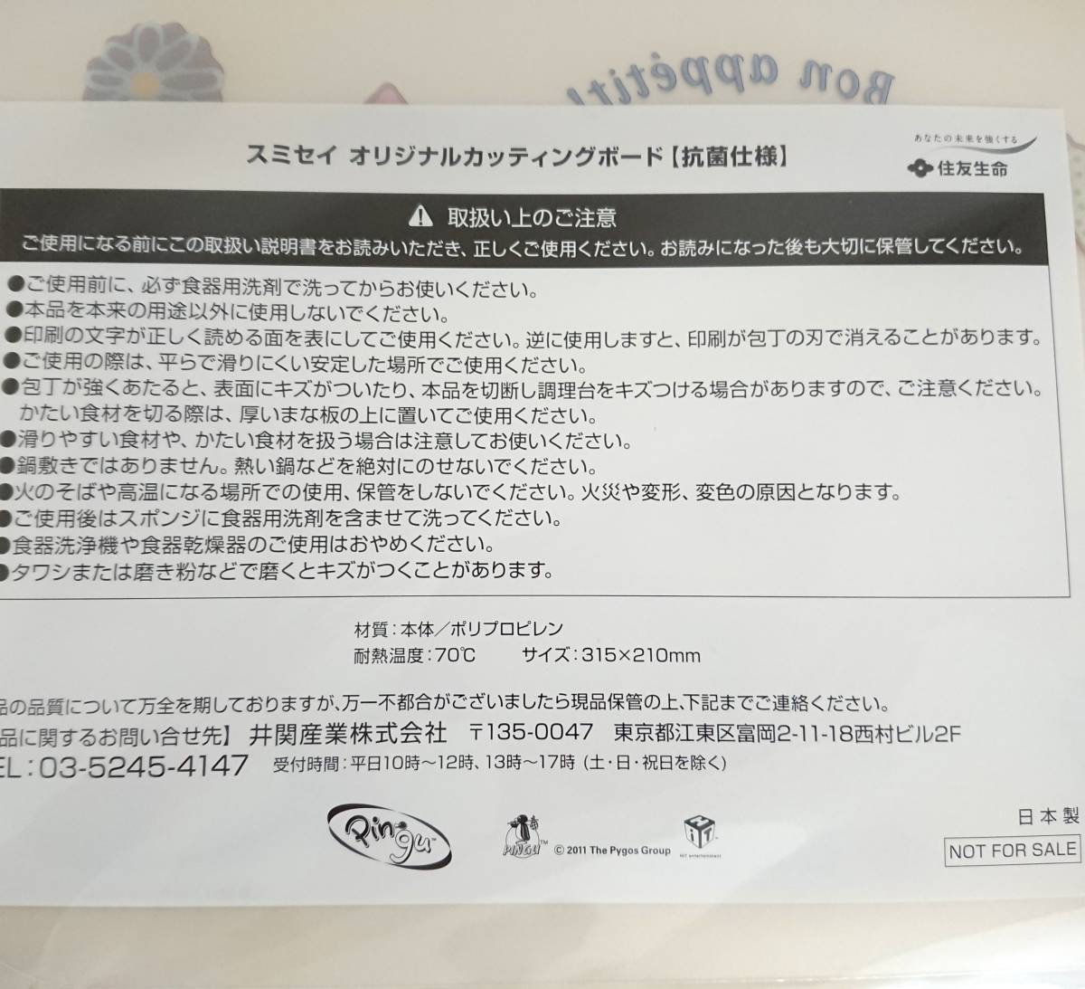 ★ピングー カッティングボード まな板シート 住友生命 非売品