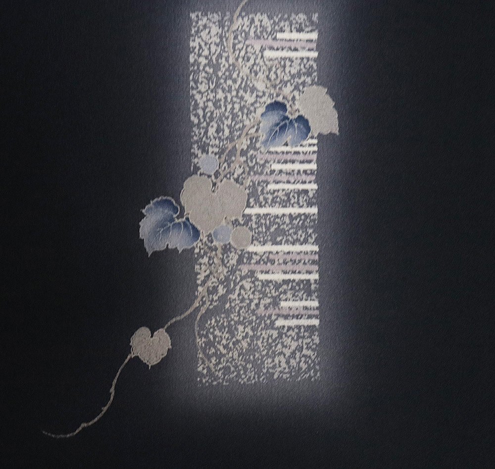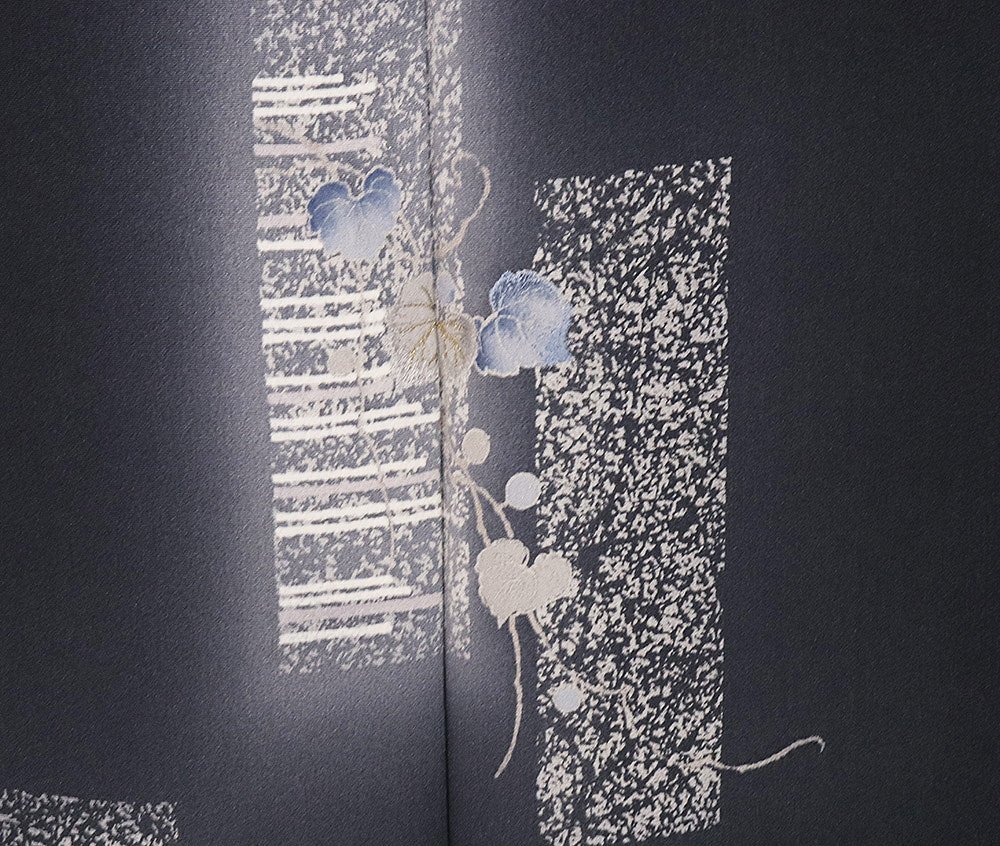 | 色・柄 | 訪問着 袷 丹後縮緬地 グレー・暈し地 野葡萄・短冊文 (写真では上手く色が出ない場合があります。ご了承下さい) |