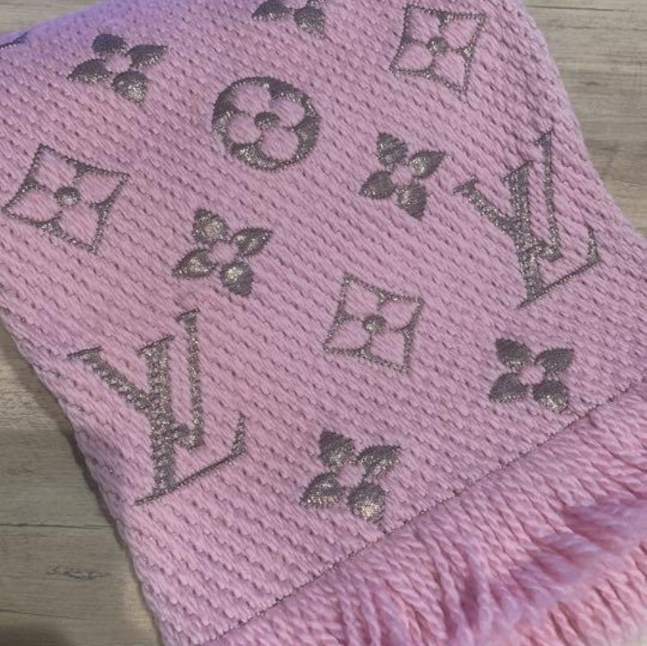 説明:可愛らしい薄いピンクとシルバーのマフラーです(*´`*)