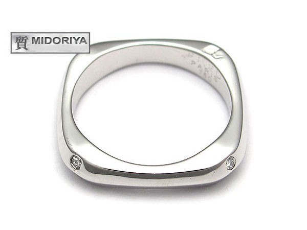 コメント 芸術的でラグジュアリー感のあるスクエア型のリングに8石のダイヤモンド(計0.14ct)をセットした気品溢れるホワイトゴールドの“クードゥフードゥルリング”。#49(日本サイズ9号)総重量5.4g