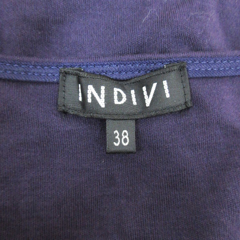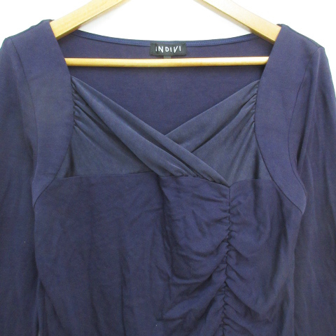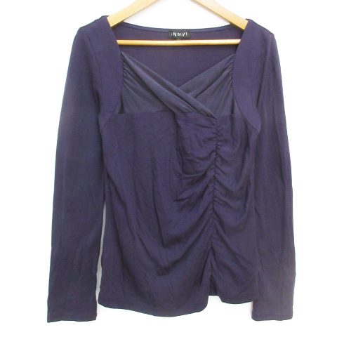 インディヴィ INDIVI カットソー Tシャツ 長袖 カシュクール 切替 無地 ウール混 38 紫 パープル /FF27 レディース