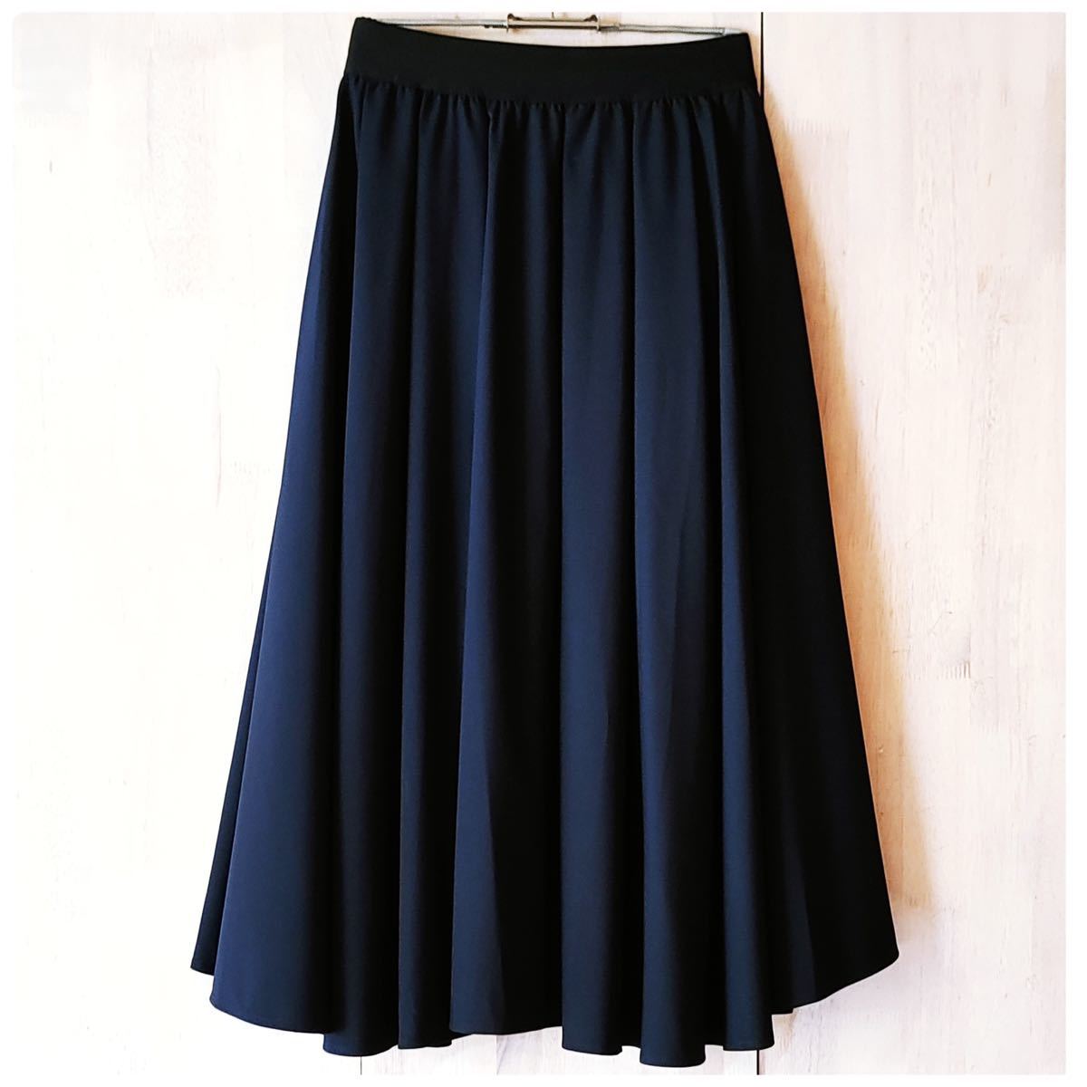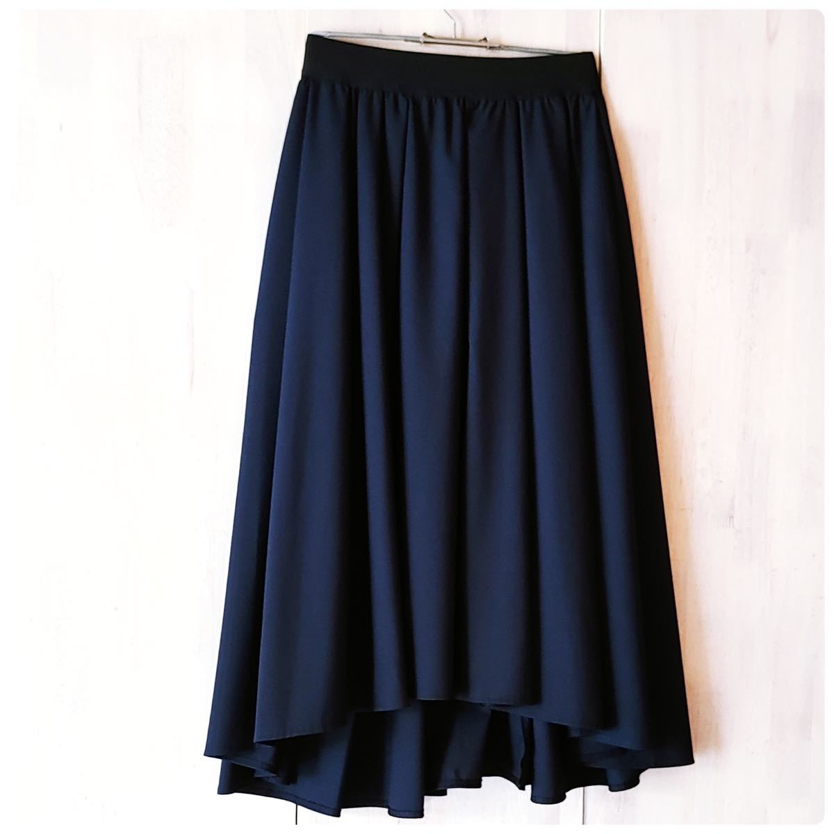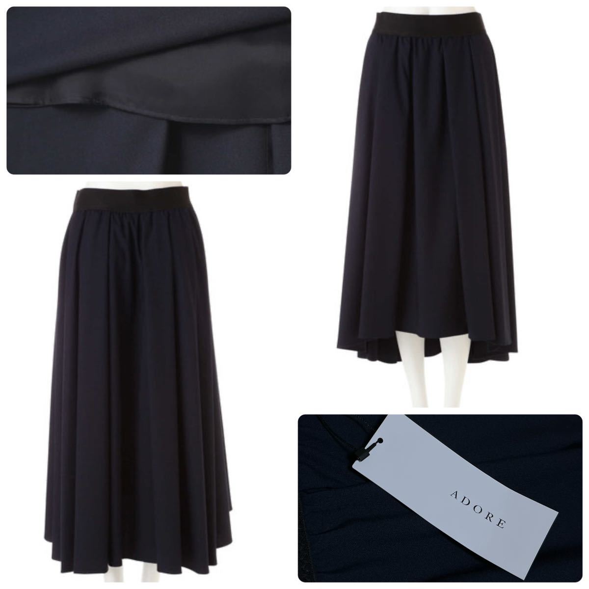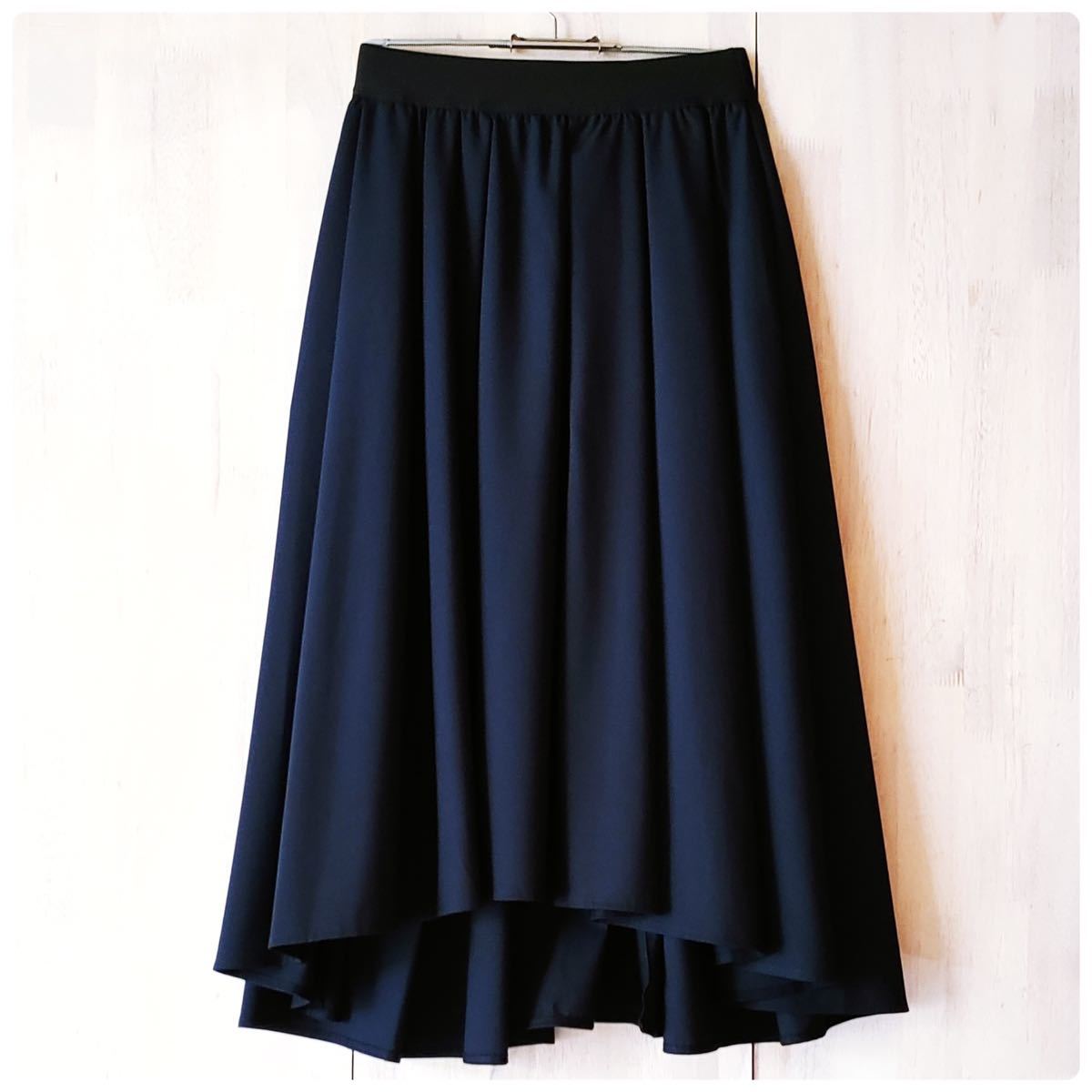きれいなドレープが美しい、ややハリのある素材で作られたスカートです。