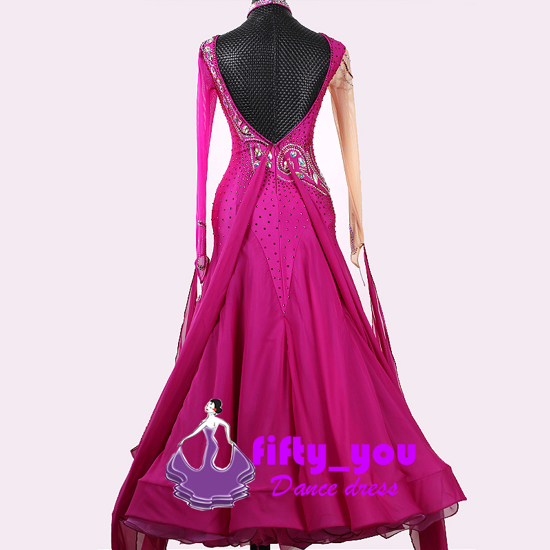 新品fifty_you サイズオーダーメイド レディース社交ダンス  競技素敵高級ドレスワンピース  キラキラ石付き  お洒落ローズピンク