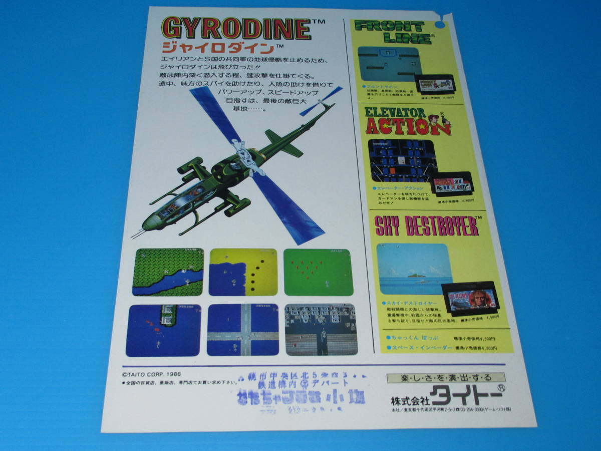 匿名送料無料 ★当時物 非売品 ファミコンちらし チラシ カタログ ★ジャイロダイン GYRODINE ☆タイトー TAITO 1986年3月13日 ★☆即決!