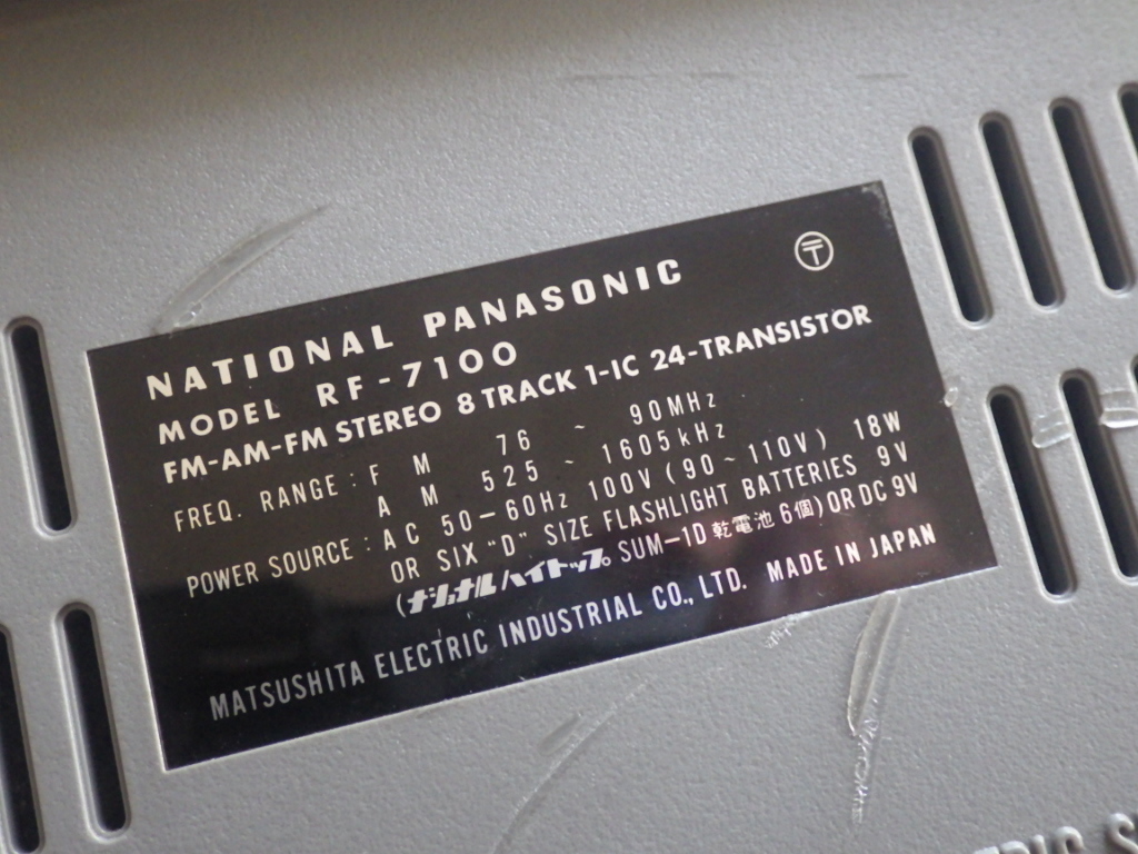 『ナショナルパナソニック FM-AM/8トラック ステレオラジオ SOUND SCOPE 8 RF-7100』日本製