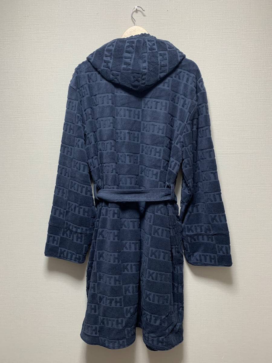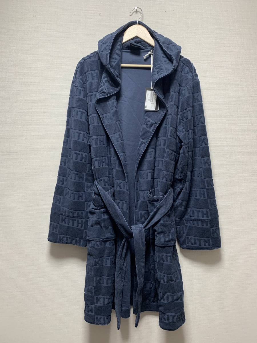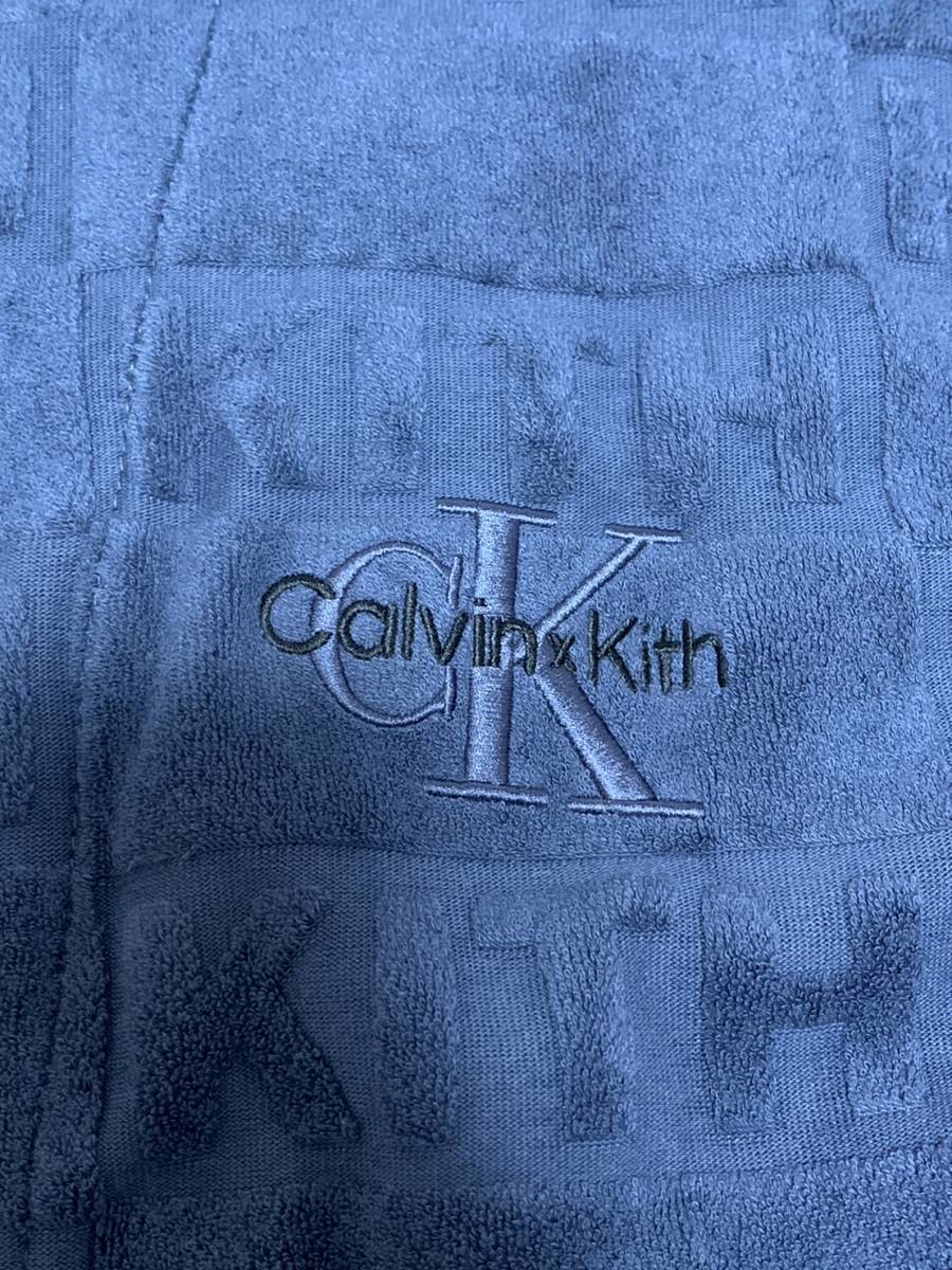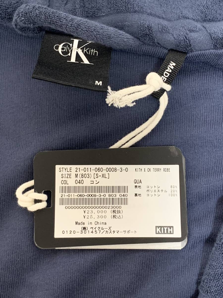 未使用☆[KITH×Calvin Klein] 21AW KITH×CK TERRY ROBE ロゴ総柄 ローブ ガウンコート M ネイビー メンズ カルバンクライン キス