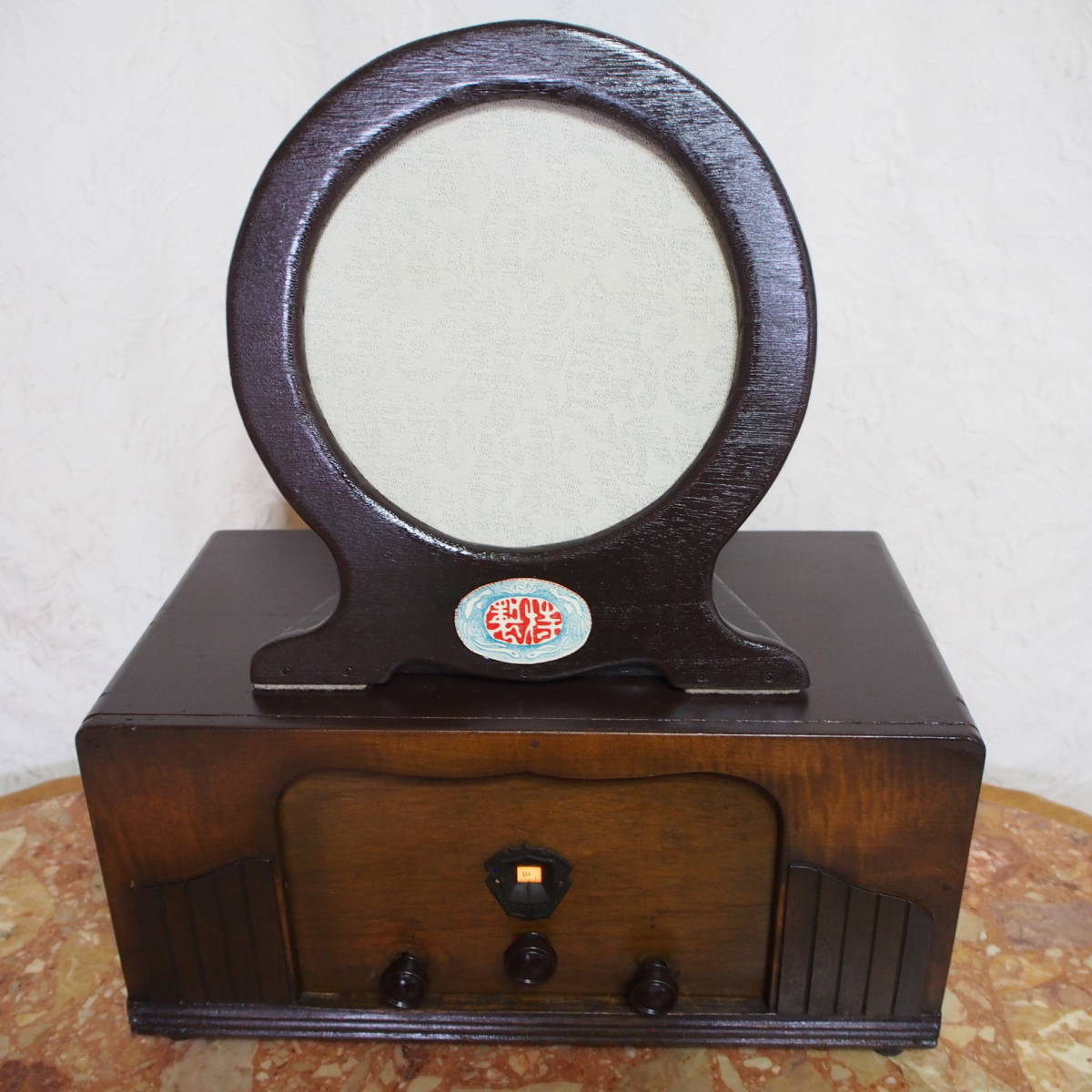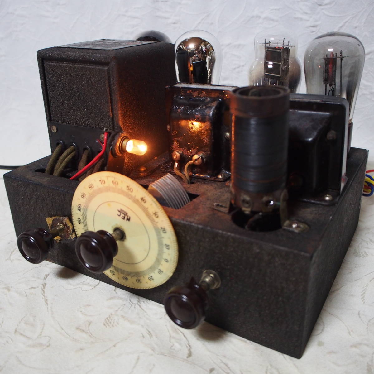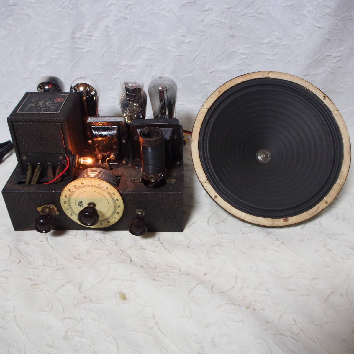 電気文化物 復元・整備済み完動品 !! メーカー不明 スピーカー外装自作 ナス型 & 大型ST真空管 使用 ビンテージ ラジオ