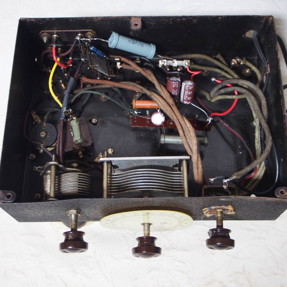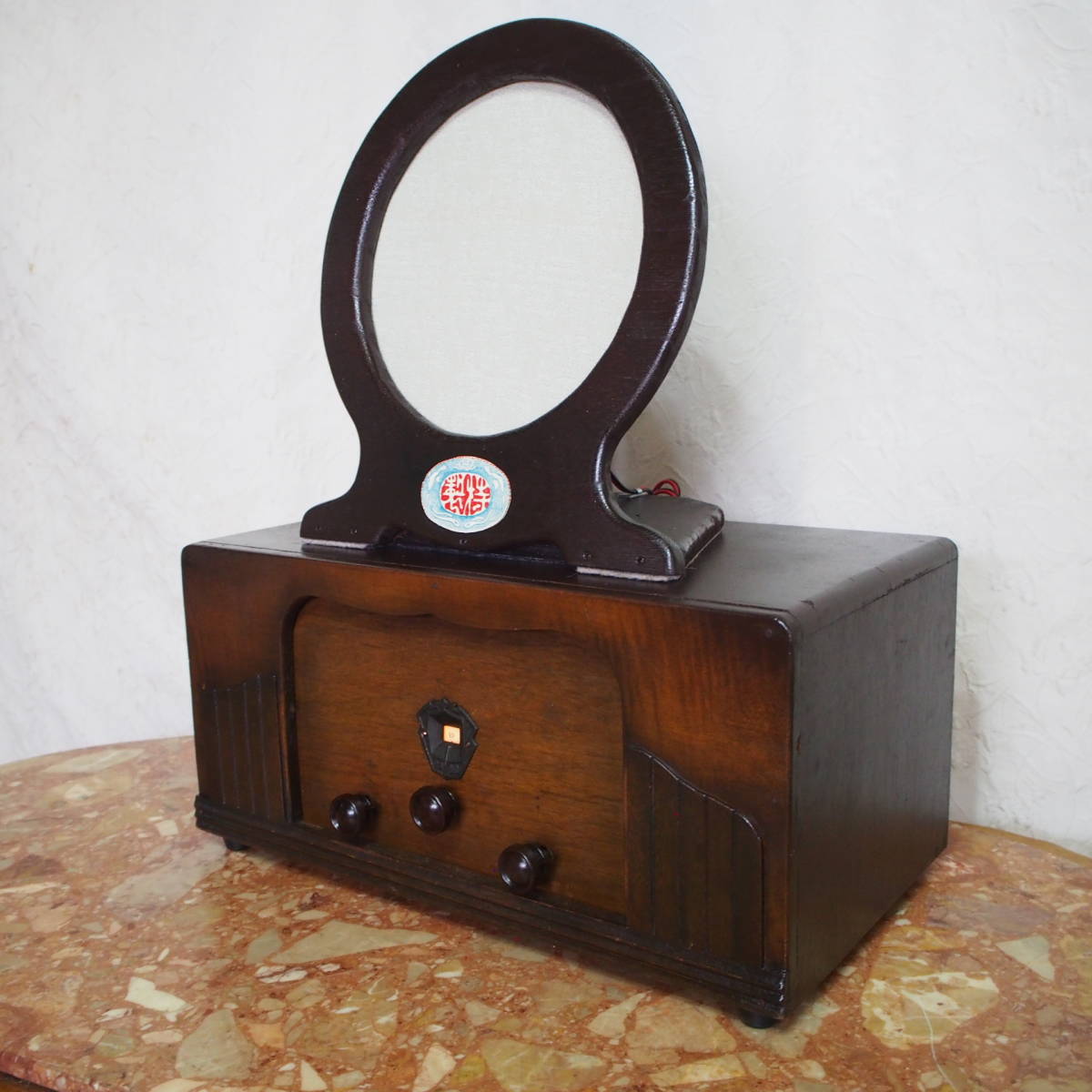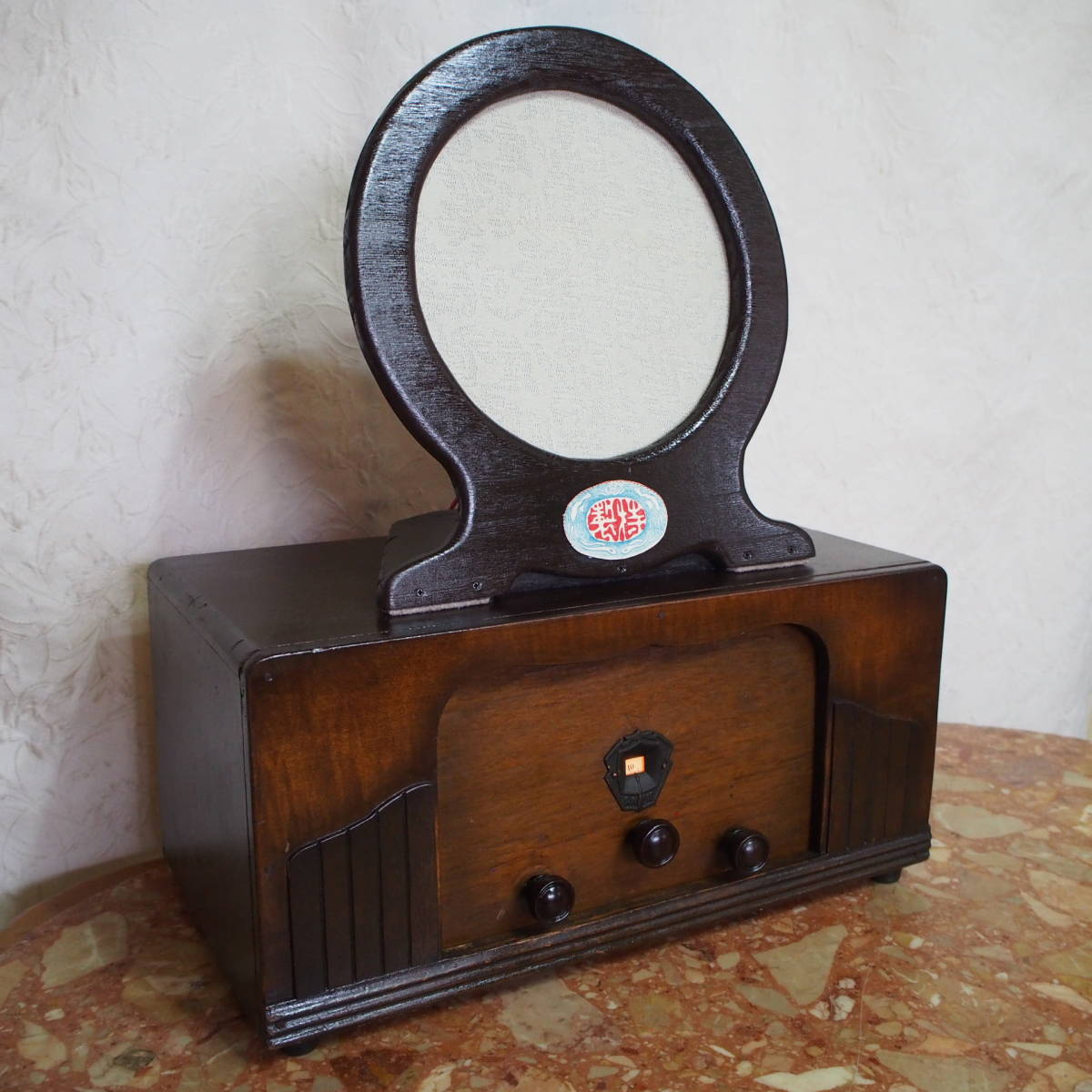 電気文化物 復元・整備済み完動品 !! メーカー不明 スピーカー外装自作 ナス型 & 大型ST真空管 使用 ビンテージ ラジオ
