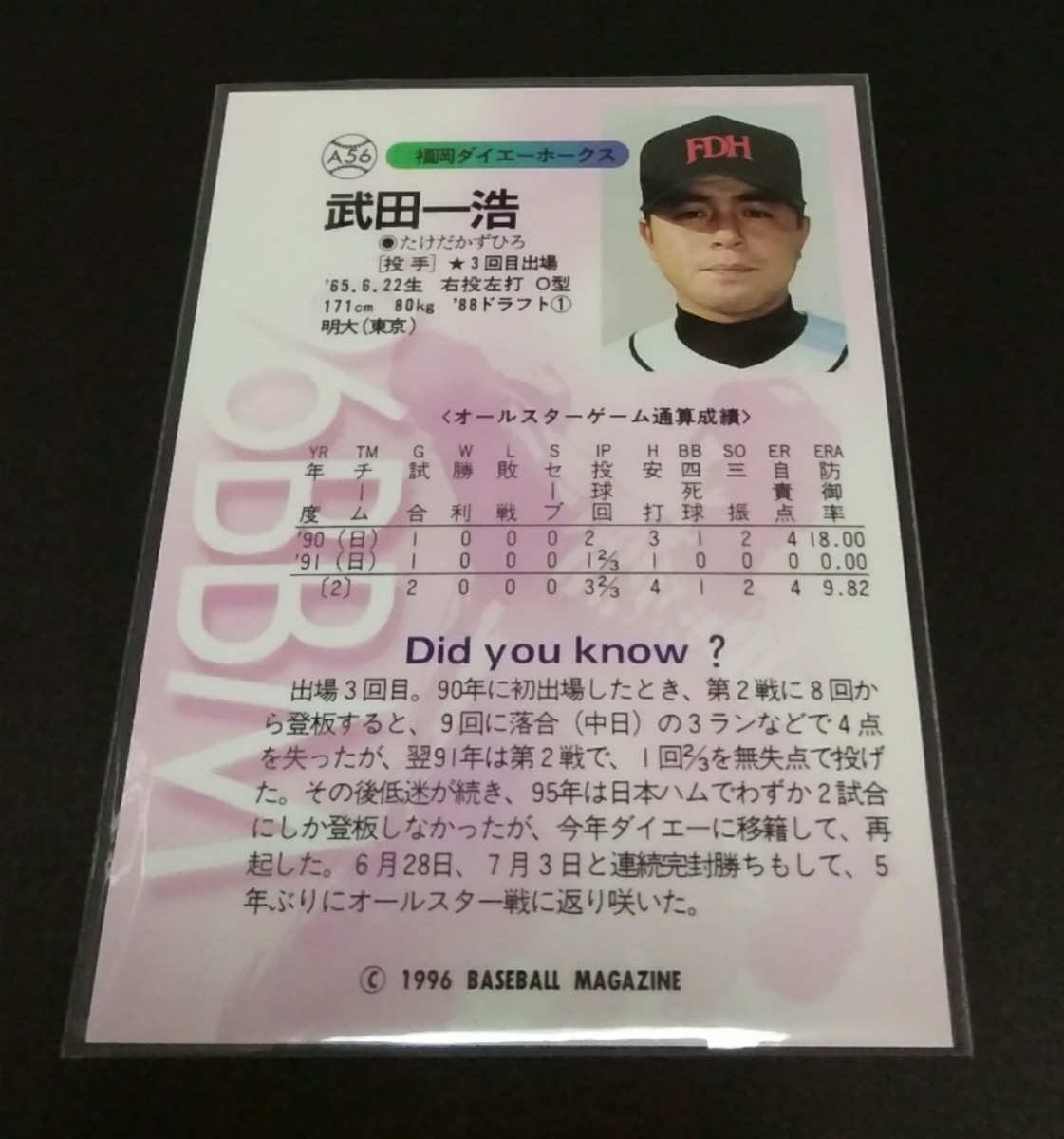 1996年BBM オールスター 武田一浩(ダイエー)No,A56。