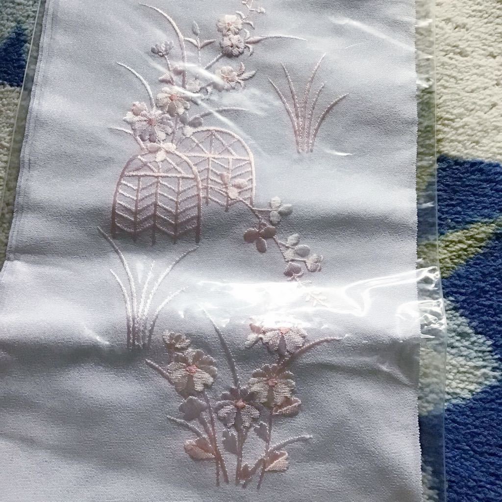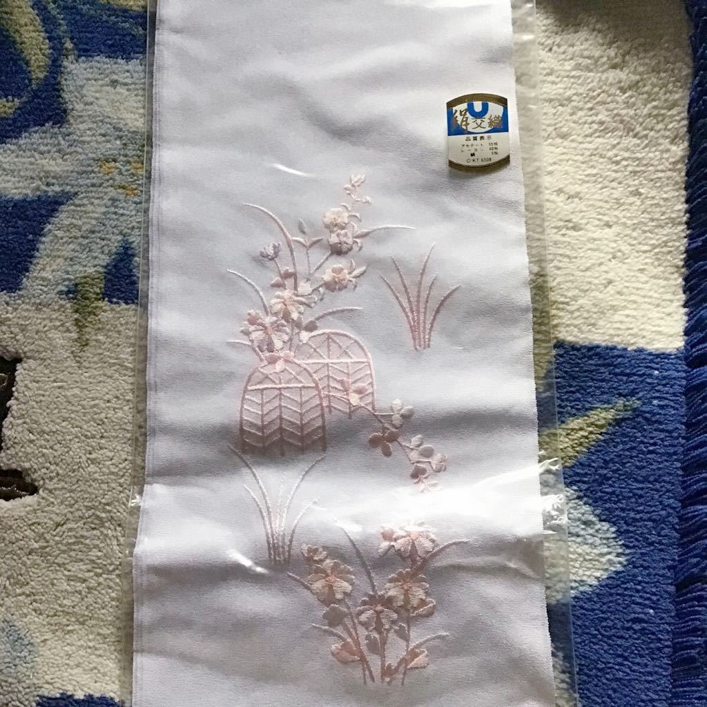 白生地に、濃淡あるピンク系の刺繍が大変華やかで素敵上品です♪
