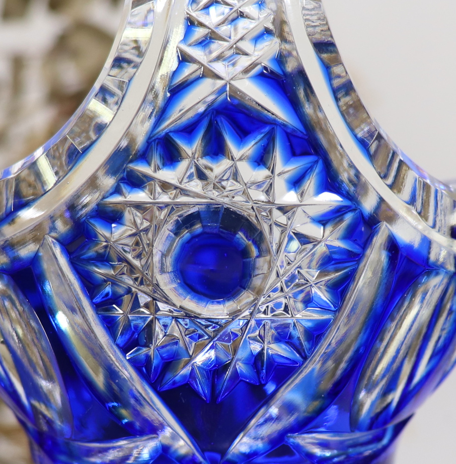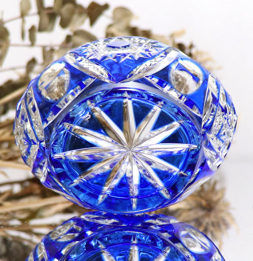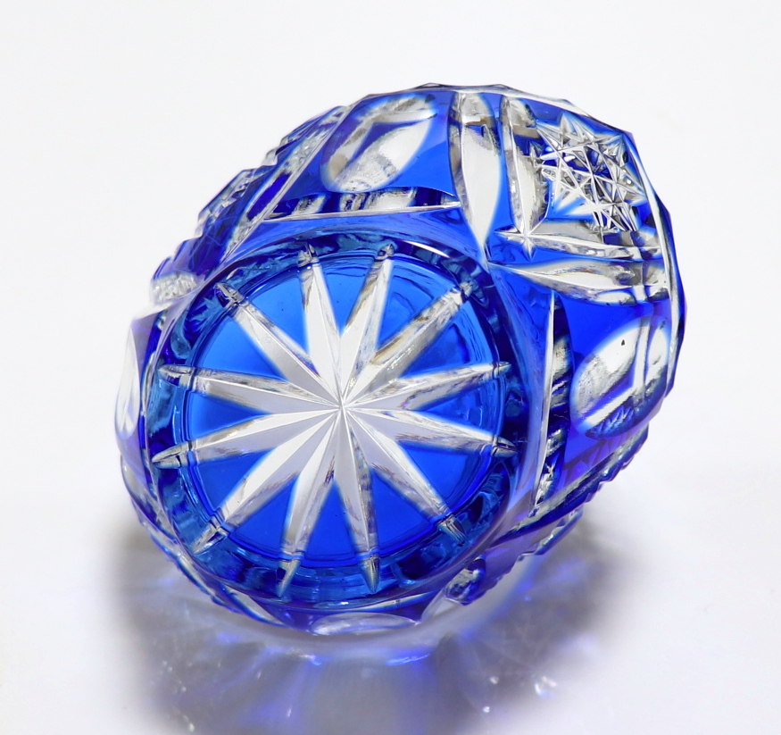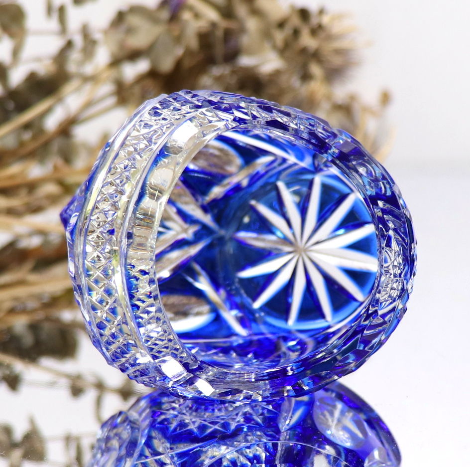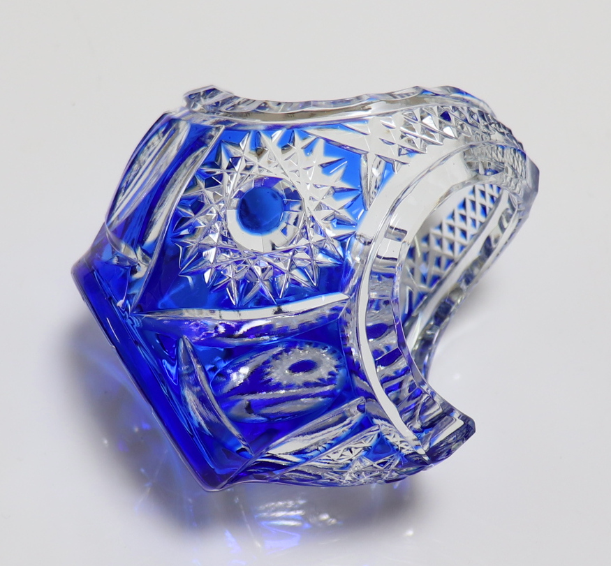 オールド・バカラ (BACCARAT) ディアマン・ピエーリー 青色被せ装飾 バスケット アンティーク 鉢 ボウル 小物入れ 切子 義山 花瓶 春海商店