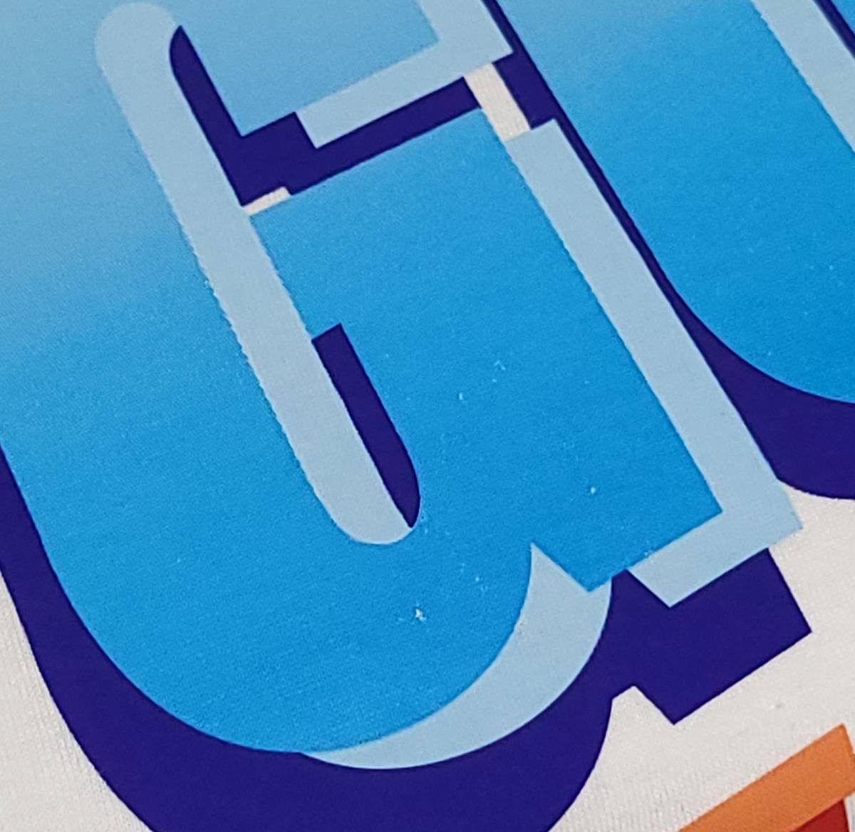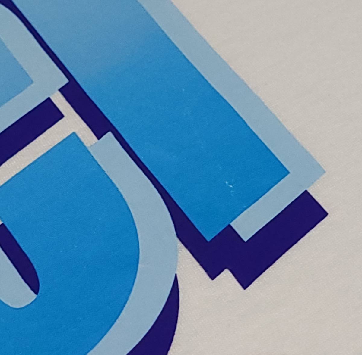 うっすらと少し毛羽立ち、少しシワ、画像7〜10のようにプリント部分、所々に擦れて白っぽくってる箇所や小さなひび割れが見受けられます。