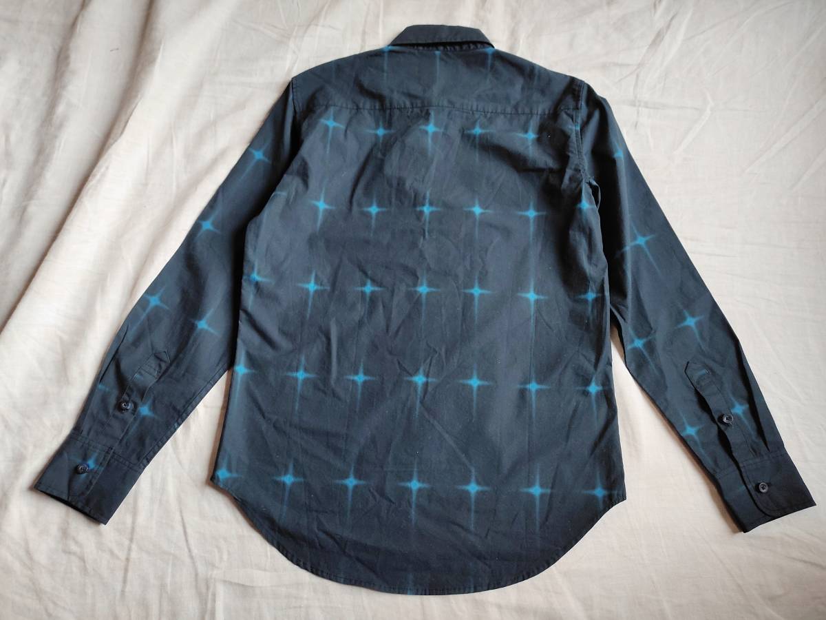 美品 glamb グラム GB0319/SH08 Cross SH クロスシャツ 夜空 星 スター プリント コットン 長袖 1 黒 ブラック 青 ブルー ★8