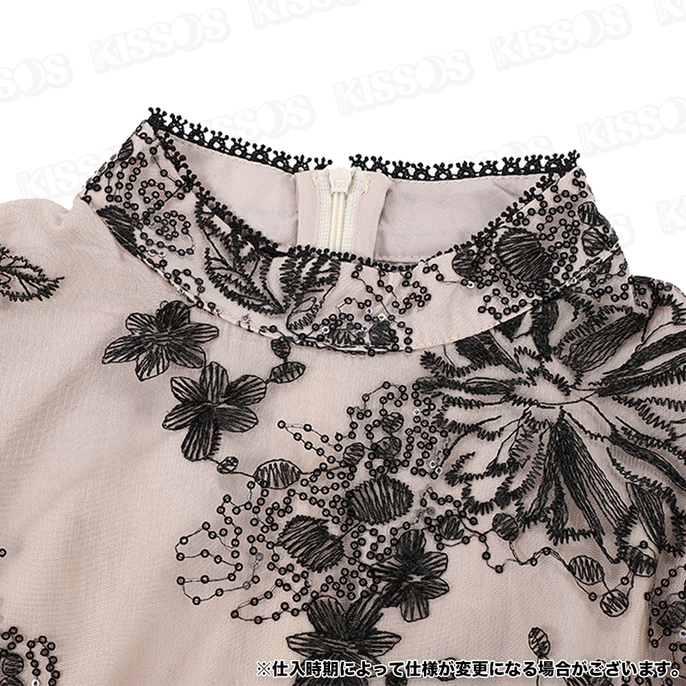 女性らしく可憐な雰囲気の花柄刺繍ドレス。